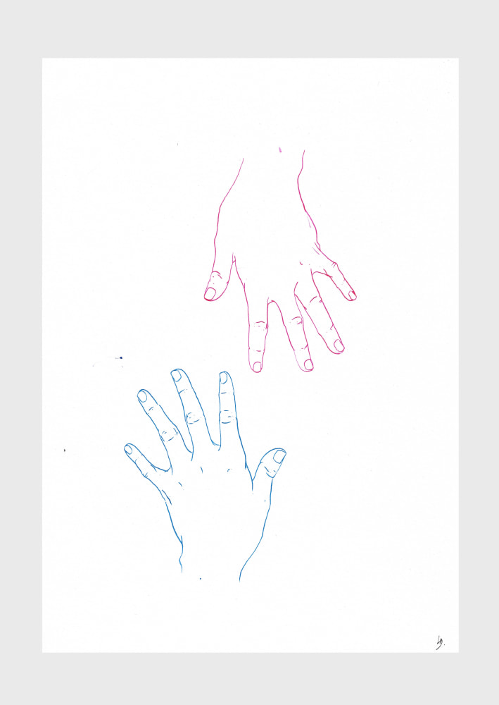 Lou Doillon’s Visions From Above are self-portraits of a woman one can identify with and believe in: strong, independent, non-fetishized, free. In a self-empowering and revealing gesture the multi-talented singer songwriter and fashion icon deconstructs the stereotype of the woman as the inaccessible object of desire,historically represented from a male gaze. She draws herself from life, keeping the pose until it becomes untenable, from torso to feet, an angle familiar to our selfie culture, showing fragments of a sexualized body at times, or a body engaged in daily activities, eating and smoking, dressed or undressed as she pleases.