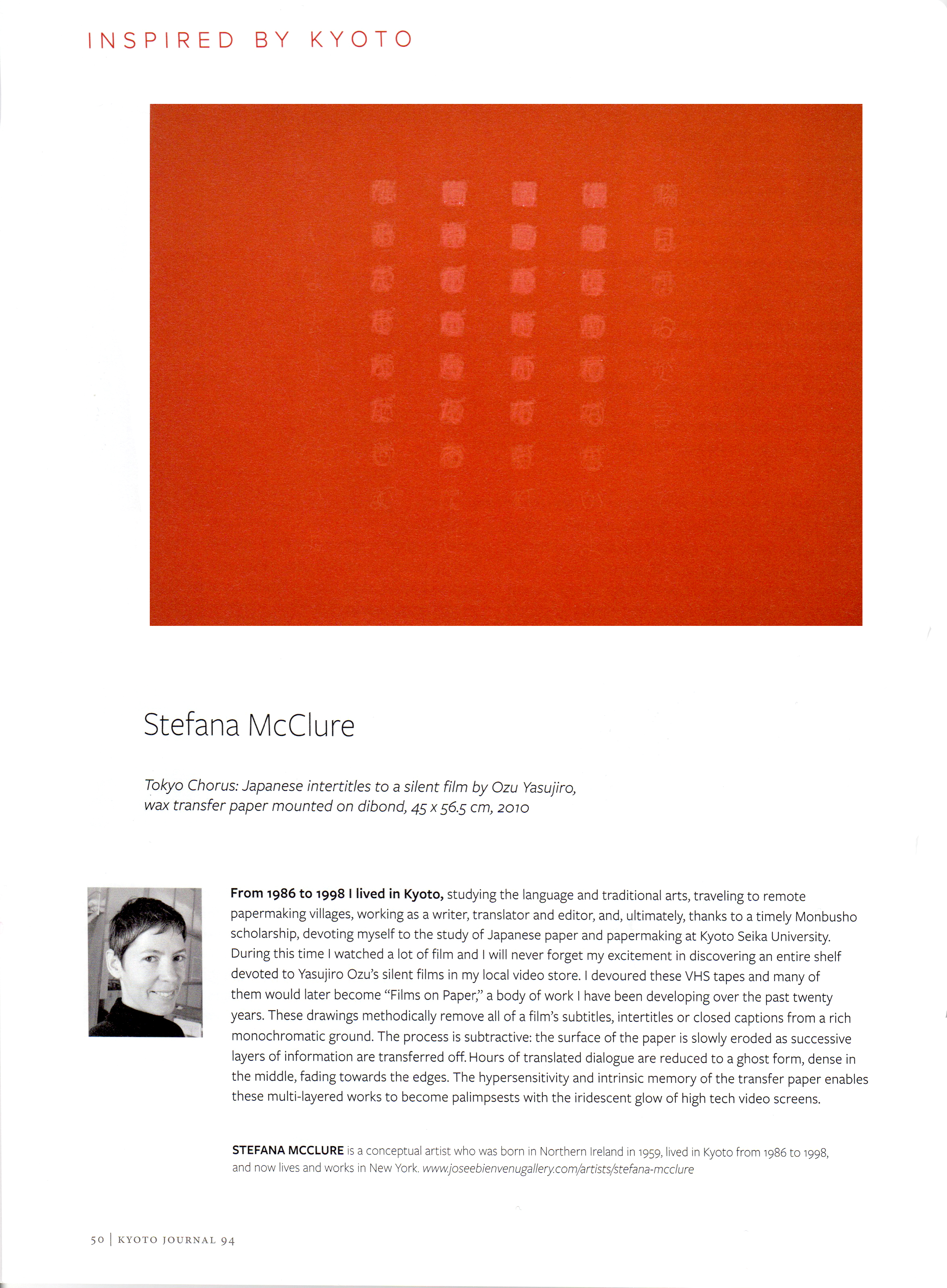 Born in Lisburn, Northern Ireland in 1959, Stefana McClure lives and works in New York. Fragmentation, obliteration, and reconstruction of information characterize McClure’s work. Primarily working with the manipulation of text, McClure translates, transposes and decodes the synesthetic structure connecting text and image, unveiling a new reality. Most known for her Films on Paper series, she meticulously layers subtitles of films, creating an abstract landscape of color and text. McClure explores ideas of language, and translation, and how linguistics and sound can take on a physical form.