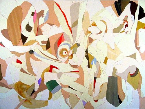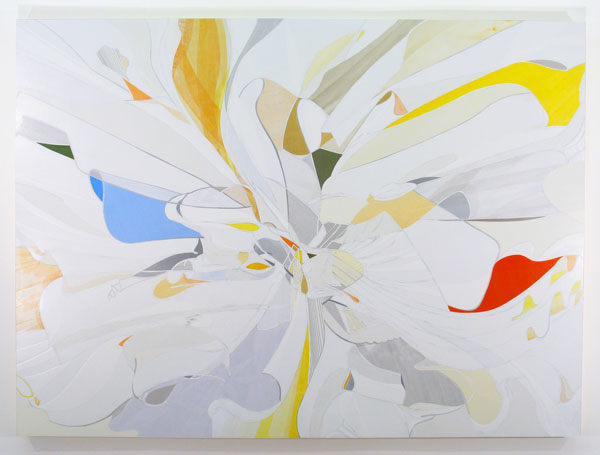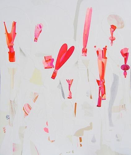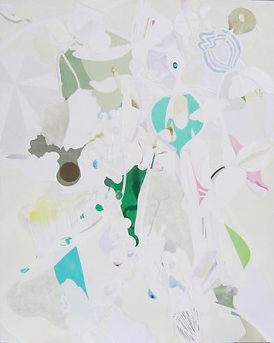 The gallery is pleased to present Invisible Ghost, Aaron Wexler’s second one-person exhibition in New York. Aaron Wexler operates within a complex matrix of acrylic and paper collage on panel. The mat acrylic surfaces of his paintings are incised and peeled away to reveal playful dreamscapes of free association. Fractal and prismatic, his paintings are carefully constructed, the surfaces collaged with a myriad of cut shapes, a complex puzzle of figure and ground. His work synthesizes abstraction and figuration, physical and psychological space, optimism and anxiety. It is imbued with a fragile equilibrium of opposites.