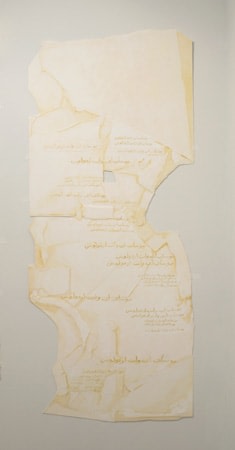 In their manifest ruination, the works may be taken as indicators—“writing on the wall”—that the current geopolitical order has hit a wall or run its course. Yet no attempt has been made to put forward a singular mandate. The works are as much a call to engagement as they are a sounding board for the fervent but also often confused or misappropriated rhetoric of incitement. Just as political struggles frequently oscillate between the desire to demolish the existing order and the effort to adapt its foundations to shifting exigencies, Daou’s work embodies a constant interplay between destruction and preservation, erasure and re-inscription.