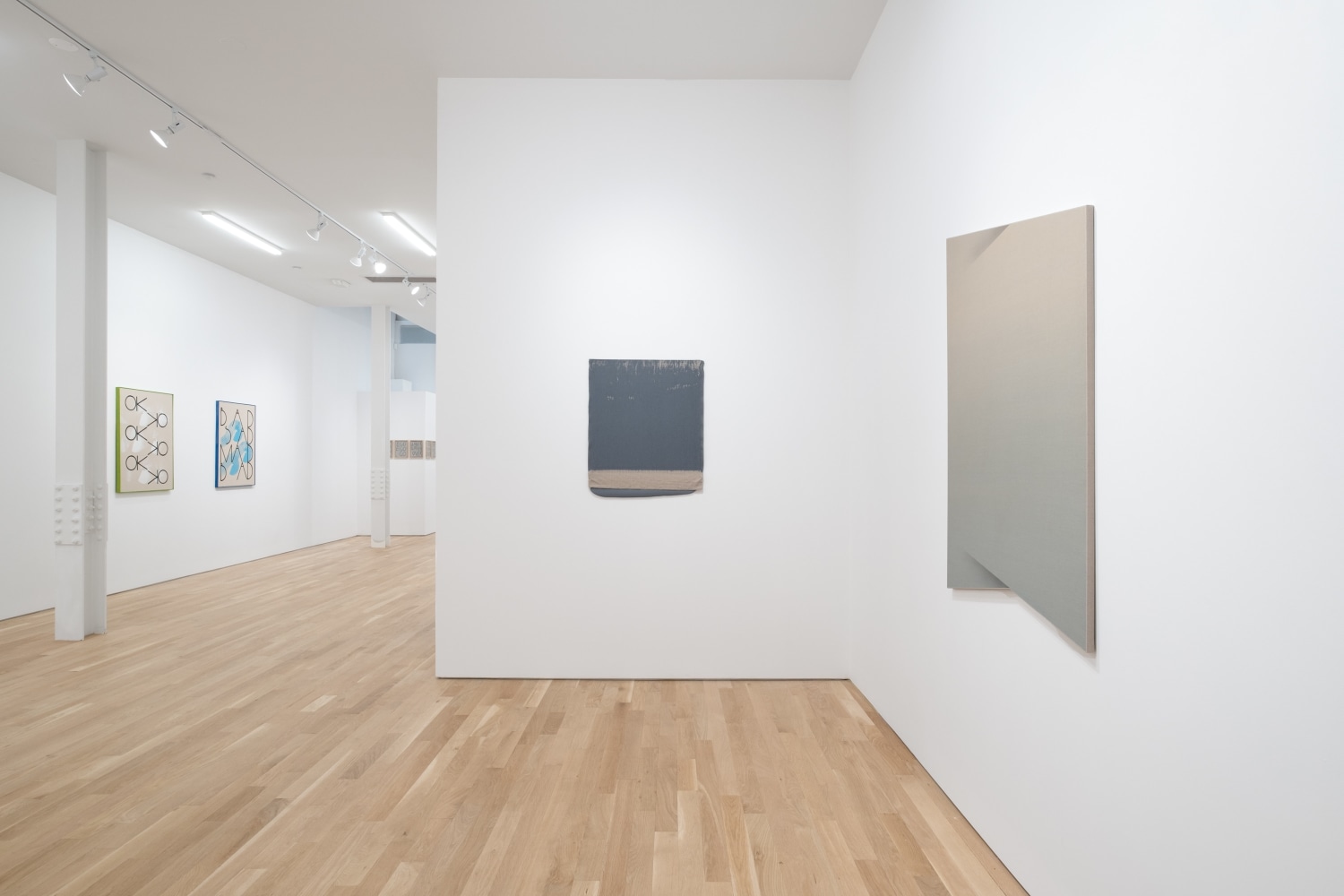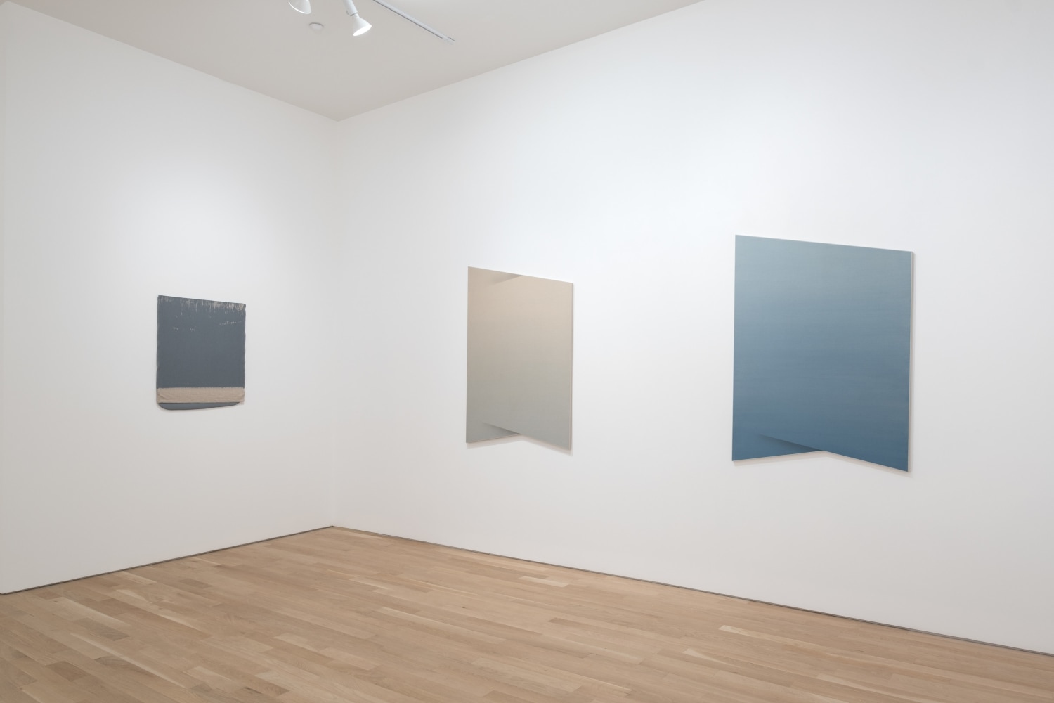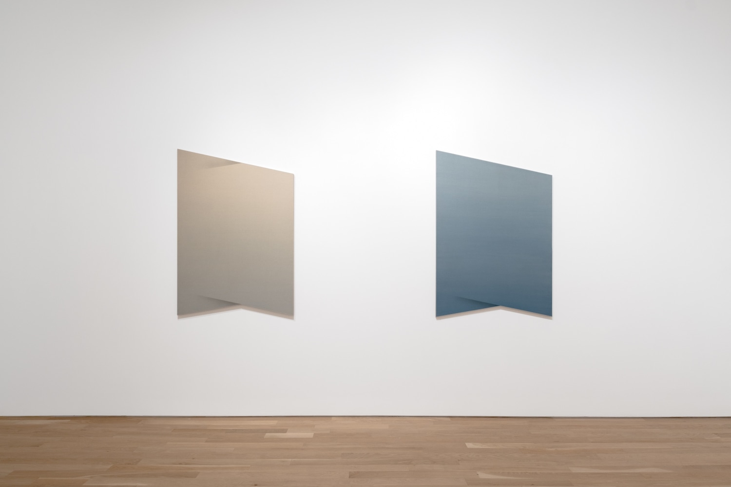 In her re-reading of twentieth Century avant-garde practices, Fernanda Fragateiro frequently repurposes already-existing and symbolically layered material, in order to fashion delicate work criss-crossed by an intricate web of inner references to the history of art and architecture. Her ongoing Overlap sculptures are made of stainless steel supports and handmade fabric-bound sketchbooks. Overlapping is an important word to talk about the essence of all these works: overlapping of elements, overlapping of materials, overlapping of histories, and time overlapping. In a new series of paintings titled Poly-Grounds, Suzanne Song creates multifaceted dimensions that blur the boundary between illusion and reality. The paintings’ shapes are direct extractions of the marginal spaces delineated from previous bodies of work. The placement of shadows disrupts the flat picture plane and transforms the two-dimensional surface into an ambiguous field: are we looking at a painting, a very finely woven fabric or a polished surface?