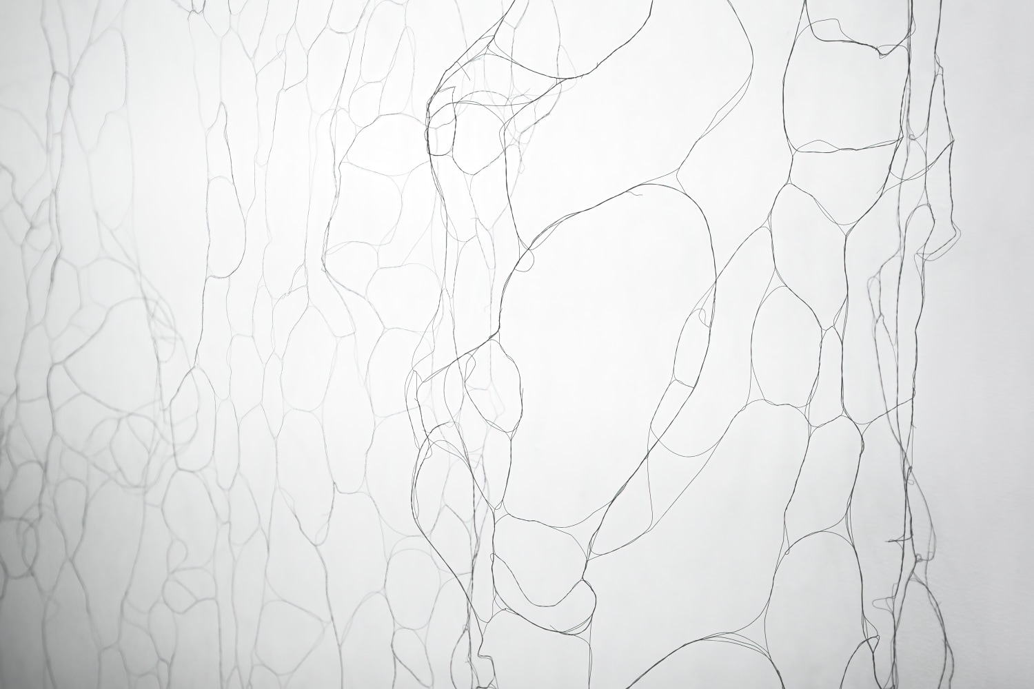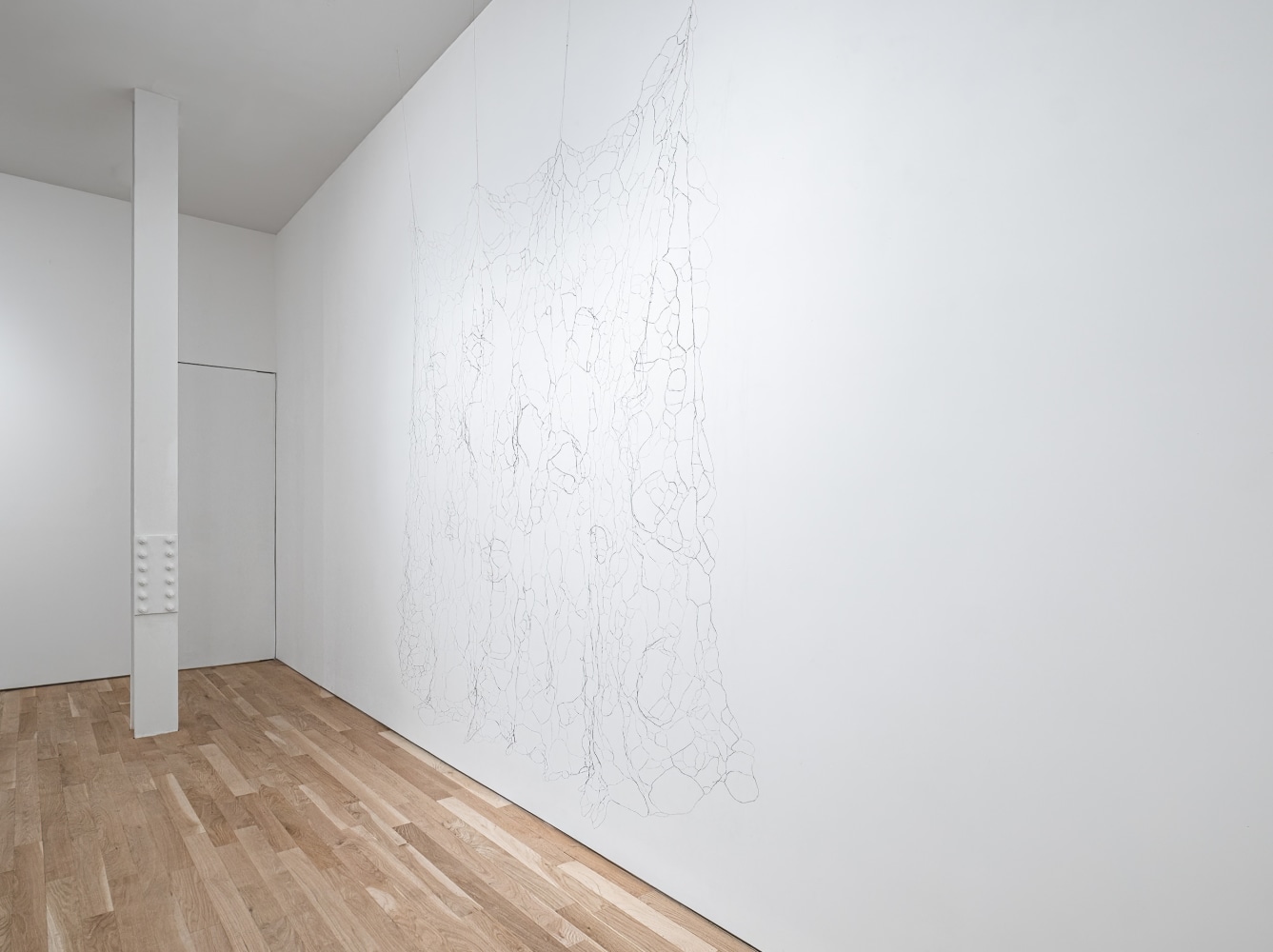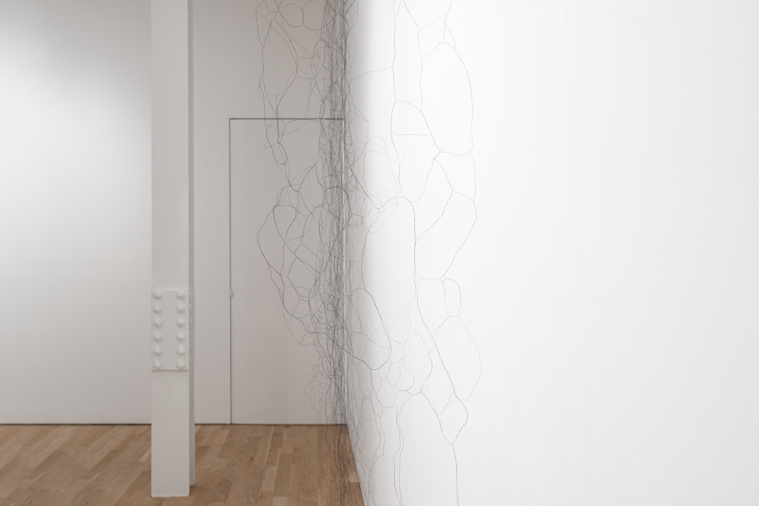 Analia Saban dissects and reconfigures traditional notions of painting, often using the medium of paint as the subject itself and the canvas as a medium rather than a support. Her methods such as unweaving paintings, laser-burning the canvas, molding forms or weaving paint through linen thread, remain central to her practice, as she continues to explore tangible materials in relation to the metaphysical properties of artworks. Julianne Swartz articulates an architecture of frailty. When viewed, her sculptures are activated slightly, at times, they even appear to breathe. Zero blanket is a silent tapestry, made from hair-thin copper wire. The tenuous lines from the irregularly weaved structure delineate and hold space until emptiness becomes substance. Zero Blanket embodies invisible presence and tangible absence, it engages a palpable vulnerability.