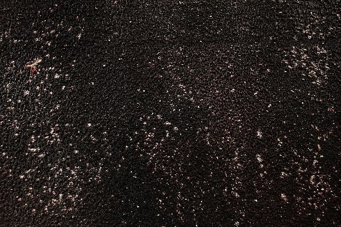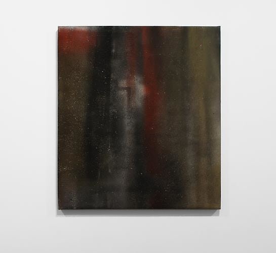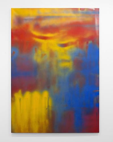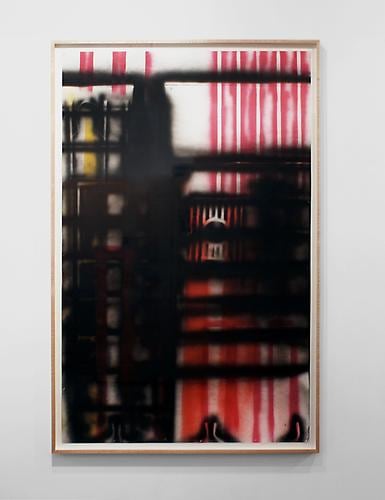 Here, the paintings document the back wall of a blacksmith workshop – still very common in Guatemala - where the production of metal objects is done on a small scale. Used as backdrops to spray paint doors, gates, grilles, railings, furniture, tools, religious figures, cooking utensils or windows - the workshop’s walls accumulate layers and layers of paint residue. The walls become a document of the negative space surrounding the painted objects. A blank canvas is stapled to the wall and slowly collects residue from the spraying done at the shop, the artist comes in regularly to measure the evolution of the work and to determine the level of exposure by deciding when to remove the canvas. All other decisions - colors, shapes, textures, and density - are dictated by the day-to-day order of business at the shop.