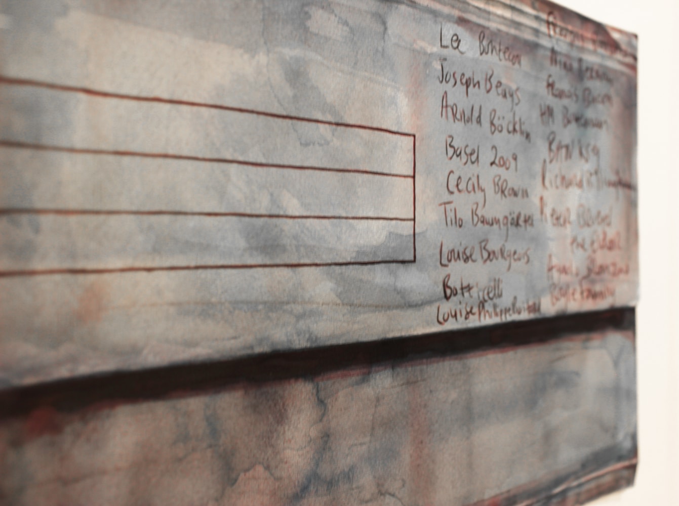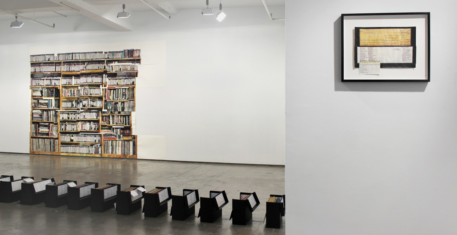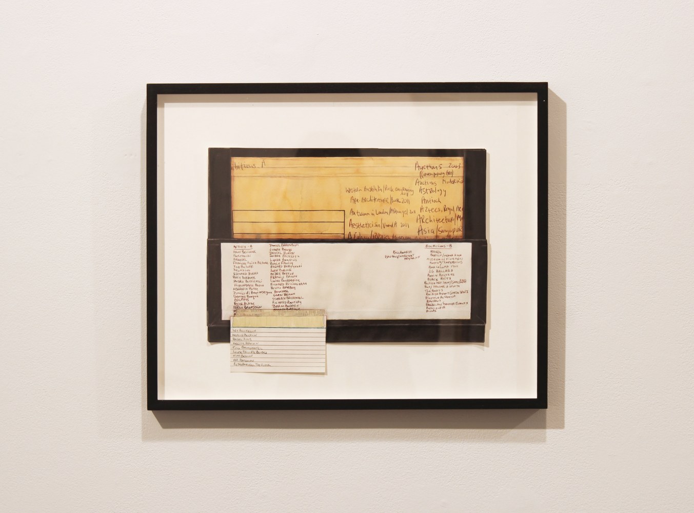 The gallery is pleased to present Dylan Stone’s first solo exhibition at the gallery. The exhibition is based on his monumental watercolor, Barbara and David Stone’s Videos, LPs and Books, a portrait of his parents through their collection. Stone reexamines intimacy and relationships through their objects and redraws his parents’ handwriting on VHS videotapes. The artist explores systems, both categorical and relational, retelling and retracing his personal history alongside his family history.