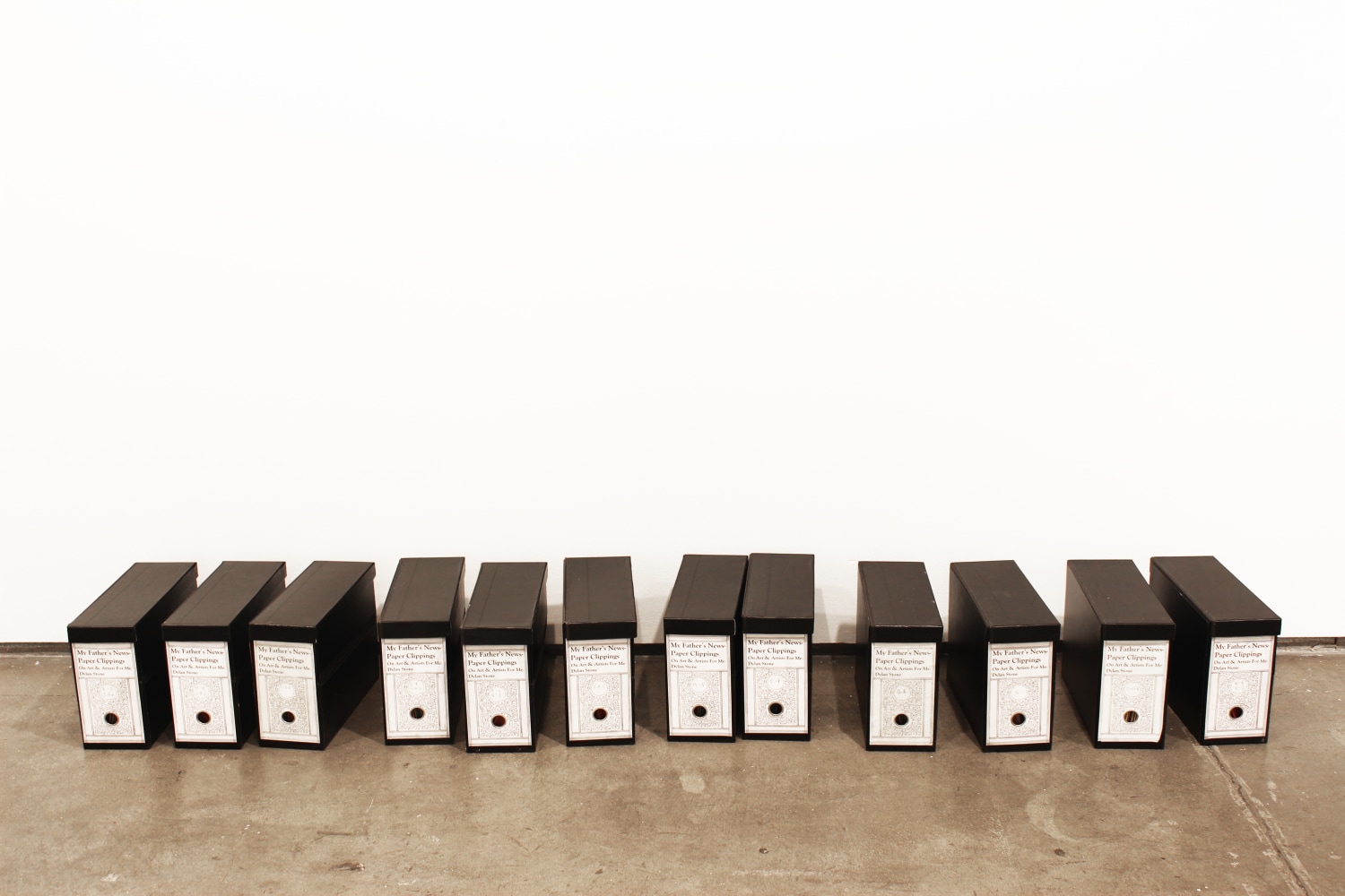 Twelve archive boxes that house My Father’s Newspaper Clippings on Art & Artists are filled with hundreds of editorials, articles, and reviews of exhibitions and books, obituaries and interviews that have been collected and filed alphabetically. This was a father's way to understand his son's world and to devour as much as he could about art. From 1989 until 2011 David sent him newspaper clippings from the International Herald Tribune, The Nation, The New York Review of Books, The Guardian and Time Out London. These clippings also had handwritten messages, 'Let's go see this show when you come back for Christmas', or 'Would you like this book for your birthday?', or 'Do you like this artist?'. From the time Dylan started art school he received these newspaper clippings by post, and serve as a recorded document until his father's passing twenty two years later.