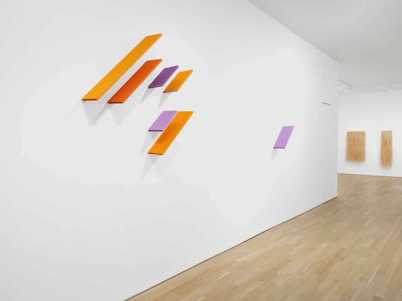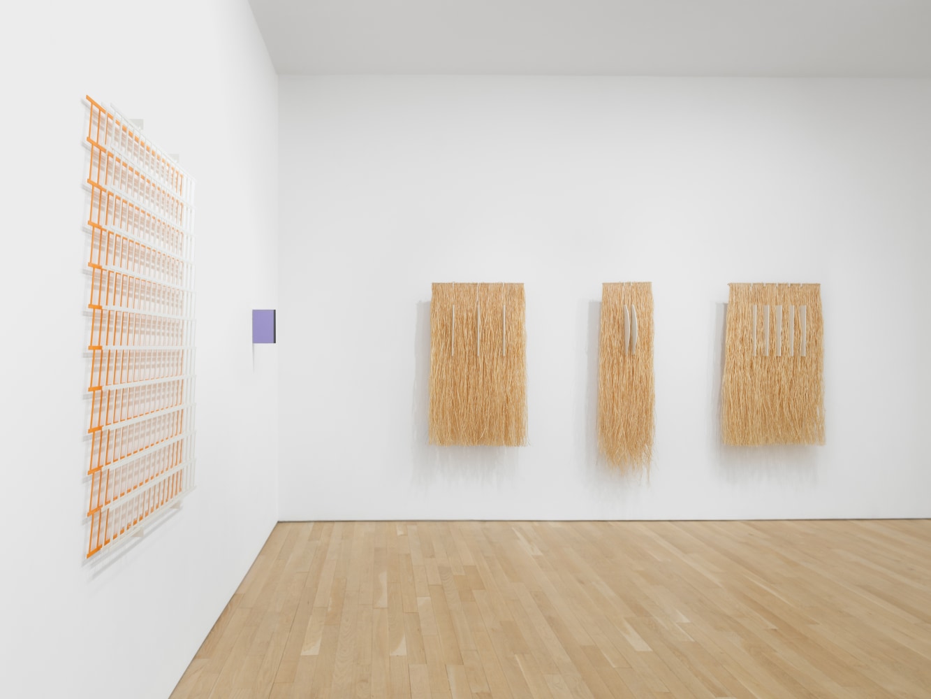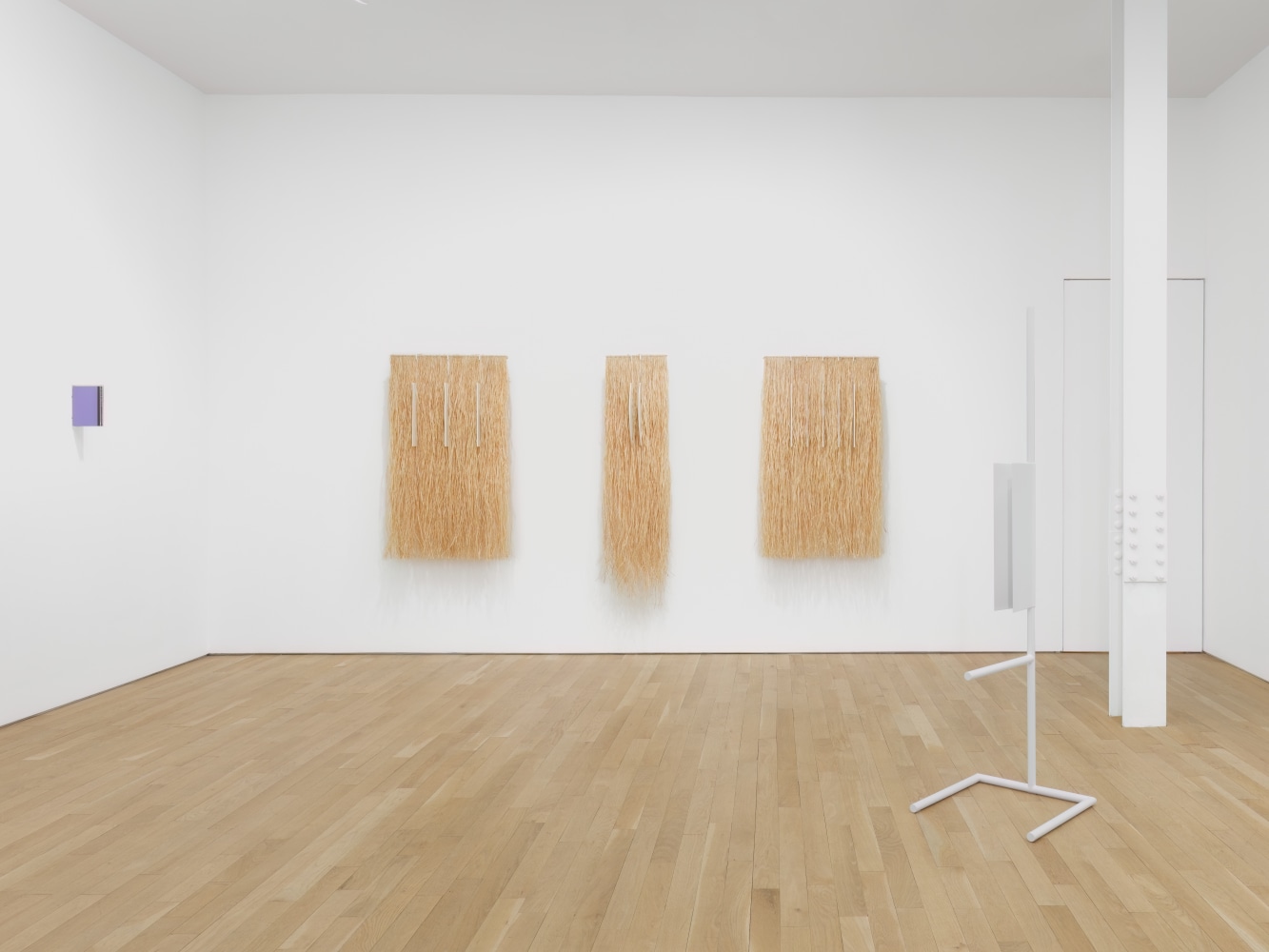 With L.B. Forest School 1, 2, and 3, a new series made of lacquered metal and raffia, a supple fiber coming from palm leaves, Fragateiro pays homage to the recently celebrated legendary Brazilian architect Lina Bo Bardi and her interest in vernacular design and materials. In her projects, Bo Bardi facilitated a coalescence of seemingly dissonant materials, the paradoxes and potentials that this work represents in its link with a “primitivism” of a modernist face. Here, geometric metal shapes emerge in Modernist order from the raffia’s body-like presence.
