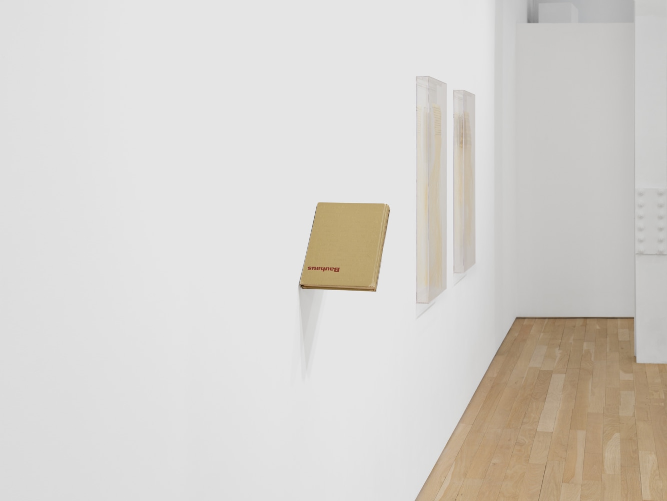 In the exhibition, Fragateiro mobilizes books as intertextual and sculptural forms that actively reshape discourses. Within the space of Demolition (Bauhaus), the artist repurposes the book—titled Bauhaus—transforming it into a pliable substance. Here, she hand-paints the overlooked and marginalized names of women artists, architects, and designers directly over the original covers, enacting a form of restorative justice.