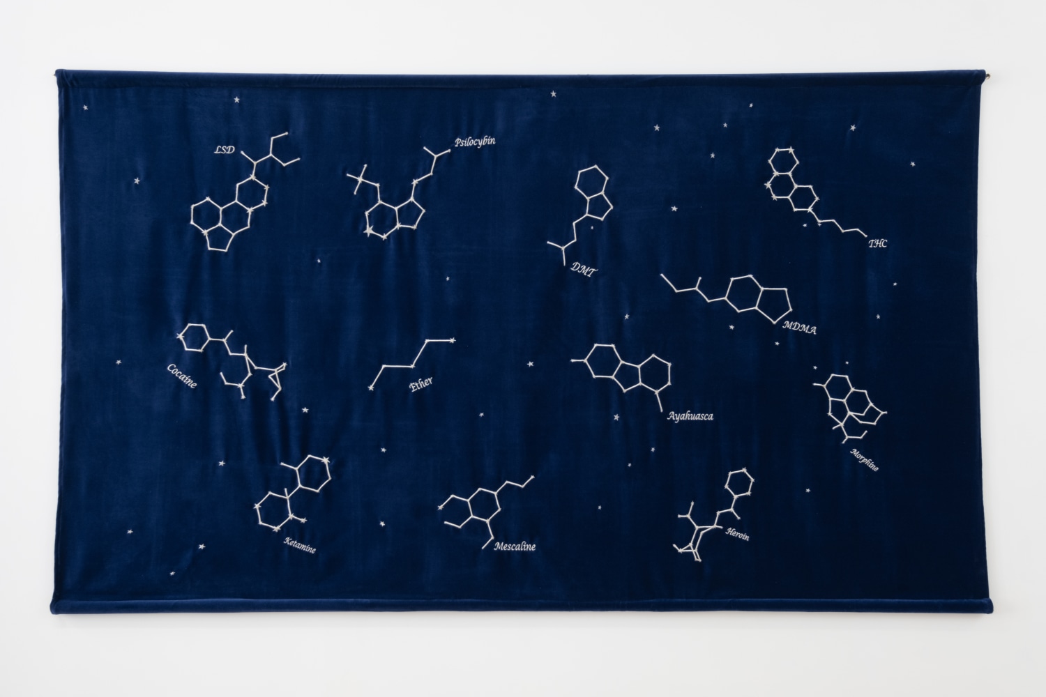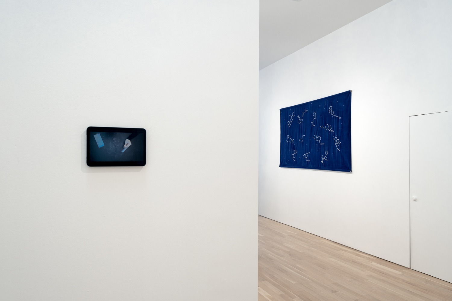 The Cosmos is a recurrent subject in Leon’s work. In Cielo Prohibido (Forbidden Sky), the molecular structure of illegal drugs is turned into a stellar map. In this series inaugurated in 2012, the artist questions the classification of certains drugs as illegal while others seemingly more dangerous remain accepted by society. In Inversion III, a single channel video from 2016, the artist meticulously scrapes a dollar bill and smokes its remains in an absurdist commentary on our modern addiction to making money.