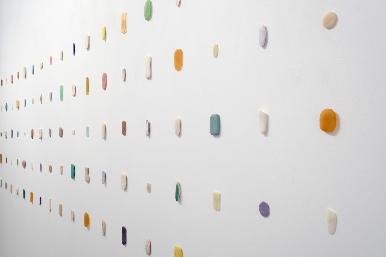 Palabras Masticadas (Chewed Words) is another invitation to discover the beauty that lies in the discarded. Multicolor chewed gums are attached to the letters of a Portable Remington typewriter. The artist has been using gum as a medium and altering typewriters since 2003. Here, she's interested in the relationship between the mouth that chews and the mouth that speaks: the written word, the spoken word and the masticated word. The imprint of the mouth on the gums, like the faint negative space of the body on the soap bars, shower after shower, become elements of an unconscious collective intimacy. In Estrellas Masticadas (Chewed Stars), old chewing gums encrusted on the sidewalk of Havana, have been connected manually with a pencil to form constellations. The sublime and the discarded converge again. Chewed gums bear their chewers DNA, in these new constellations people are being united and reminded that we are all somehow related.