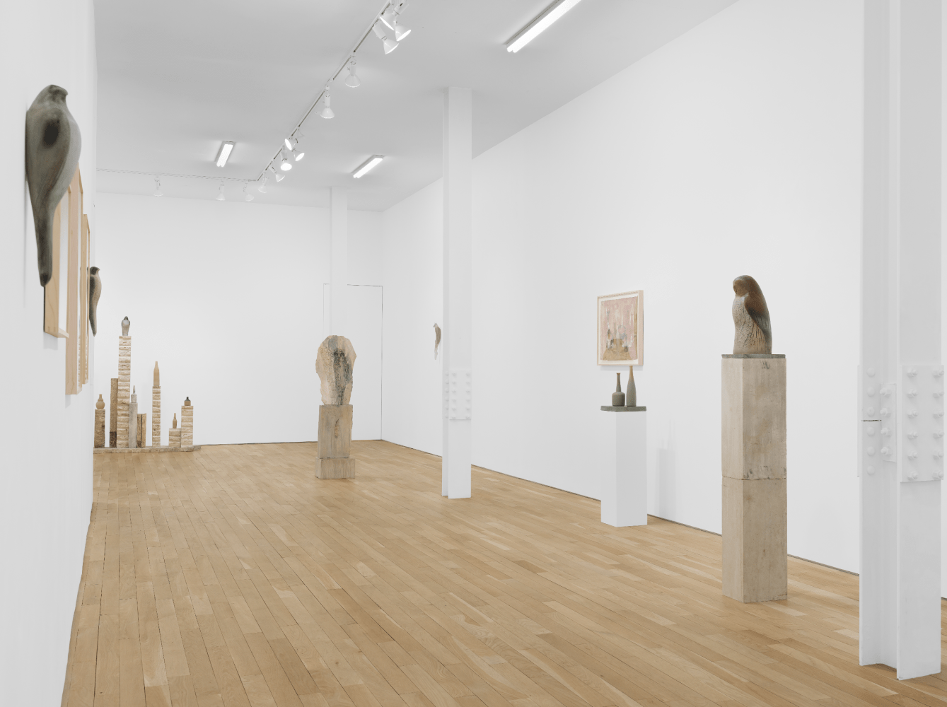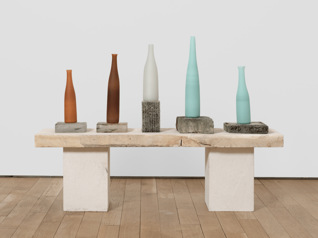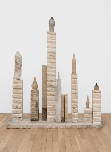 Balancing between the two dominant themes of Rosen’s endeavor - the natural environment that surrounds her studio in Northern California and her ongoing fascination with the imagery of Giorgio Morandi - the selected works manifest the full range of her vision as well as the complex physicality that informs her practice. Frequently combining materials such as carved and pigmented limestone, marble and hand-blown glass, Rosen’s sculptures simultaneously embody a unique personal aesthetic and a deeply reflective meditation on modernist sculptural traditions.