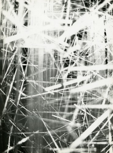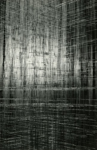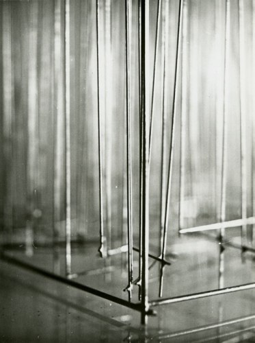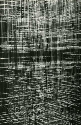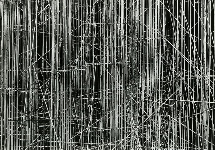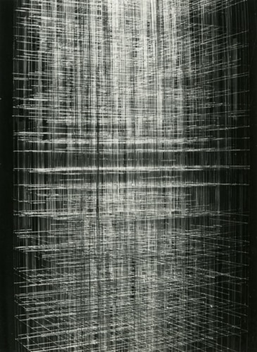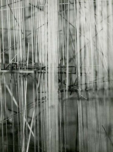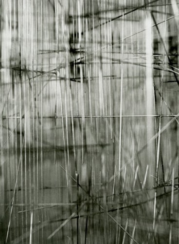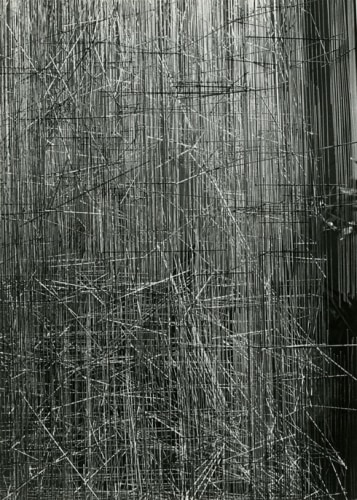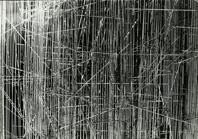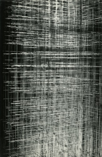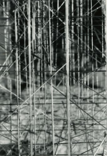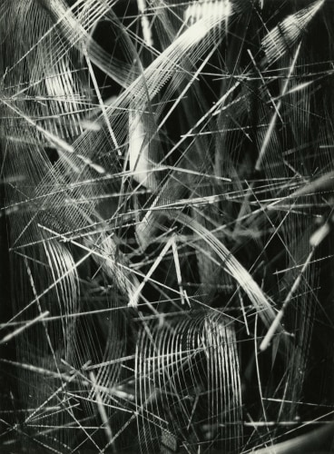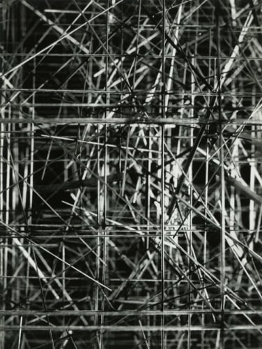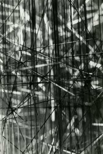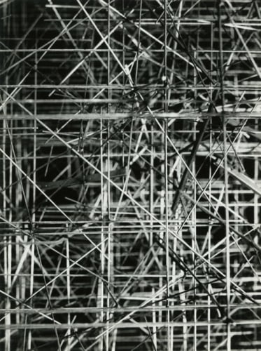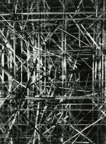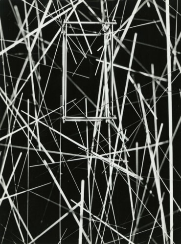 Photography, omnipresent in his work in the form of newspaper collages, or as a support for his Braille poems, was an element he would often incorporate into the work. However, Ferrari's more direct and personal investigation of the medium itself has remained unseen until now. Over two decades, he produced a corpus of nearly abstract photographs portraying his own steel sculptures. The relatively small scale black-and-white prints document relationships between lines and negative space. Ferrari’s joy in portraying them is obvious in the carefully calibrated framing and lighting, in the subtlety of the gradations of grey. It is rare to have a record of an artist looking at his own work. Ferrari's photographs capture his wandering through the infinite webs of his sculptures. They reveal intimate angles through soft and sharp focus, and become a testimony to his way of approaching and relating to his own practice.