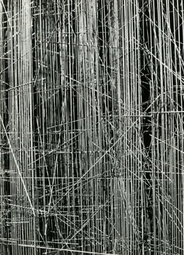 In 1976, fleeing the military regime in Argentina, Ferrari emigrated to São Paulo, where he stayed until 1991. Moving into a spacious workshop, he returned to the semi-abstract aesthetics of the early 1960s, making sculptural works of great complexity with intertwined iron rods. Several of these major sculptures were gathered in Tangled Alphabets: León Ferrari and Mira Schendel, at the Museum of Modern Art in 2009.