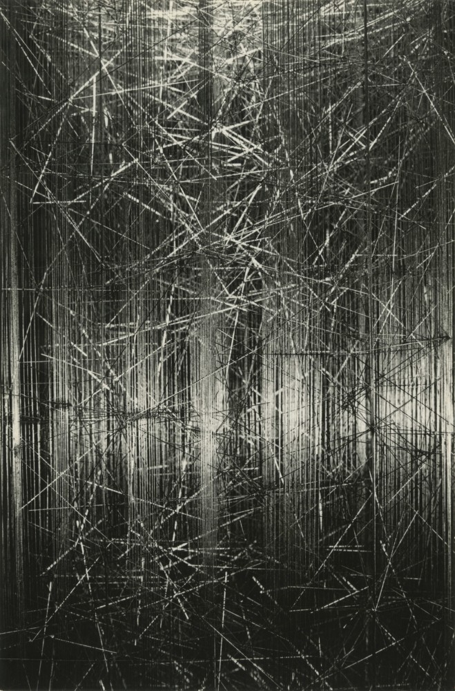 The accumulation of metallic strokes in the photographs of León Ferrari creates a dizzying density within a carefully framed fabric. Having fled the Argentine military regime in 1976, Ferrari emigrated to Brazil. There, installed in a spacious workshop, he returned to works in steel sculpture in the semi-abstract vein of the early 1960s, which he then proceeded to photograph methodically. León Ferrari (1920-2013, Buenos Aires) is considered among the most significant artists working in Latin America during the second half of the twentieth century. He studied electrical engineering before becoming one of the foremost pioneers of conceptual art in Argentina. Ferrari’s work has been widely exhibited internationally. In 2007, he was awarded the Golden Lion at the 52nd Venice Biennial. Selected exhibitions include: MALBA, Buenos Aires (2012); Museum of Modern Art, New York (2009); Museum of Fine Arts, Houston (2004); Museo Nacional Centro de Arte Reina Sofía, Madrid (2000). His work is included in prominent public and private collections including: the Museum of Modern Art, NY; Reina Sofia, Madrid; Museo de Arte Contemporaneo, Buenos Aires; Museo de Arte Moderno, Mexico; Museum of Fine Arts, Houston; Museo de Arte de São Paulo; Museo de Arte Moderno de Rio de Janeiro; Daros Latinamerica, Zurich; the Cisneros Collection; Tate Modern, London; The Bronx Museum of the Arts, NY; the Blanton Museum of Arts, Austin, TX.
