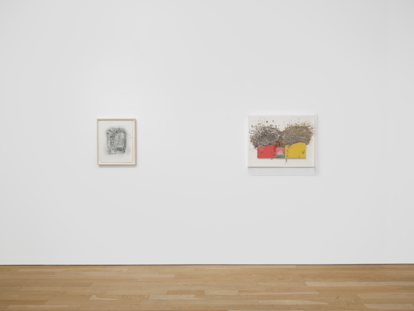 Stephen Talasnik (b. 1954, Philadelphia, PA) is interested in the intersection of drawing and building. His work is informed by time travel and “fictional function," intrigued with the infrastructure of the urban environment. His drawings are otherworldly, they organically evolve with a reliance on intuition; there is no desire to finish, rather an ambition to “complete”. Jonathan Callan (b. 1961, Manchester, England) works with found objects and imagery. “Most of my work is derived from a fascination with materiality. I'm interested in fluff, dirt, and dust. I'm interested in things breaking down. I'm interested in what cannot be said but can only be shown.” His use of books, decontextualized from their original text, transforms the language of the work into one that moves away from the linguistic to that of the visual and emotive.