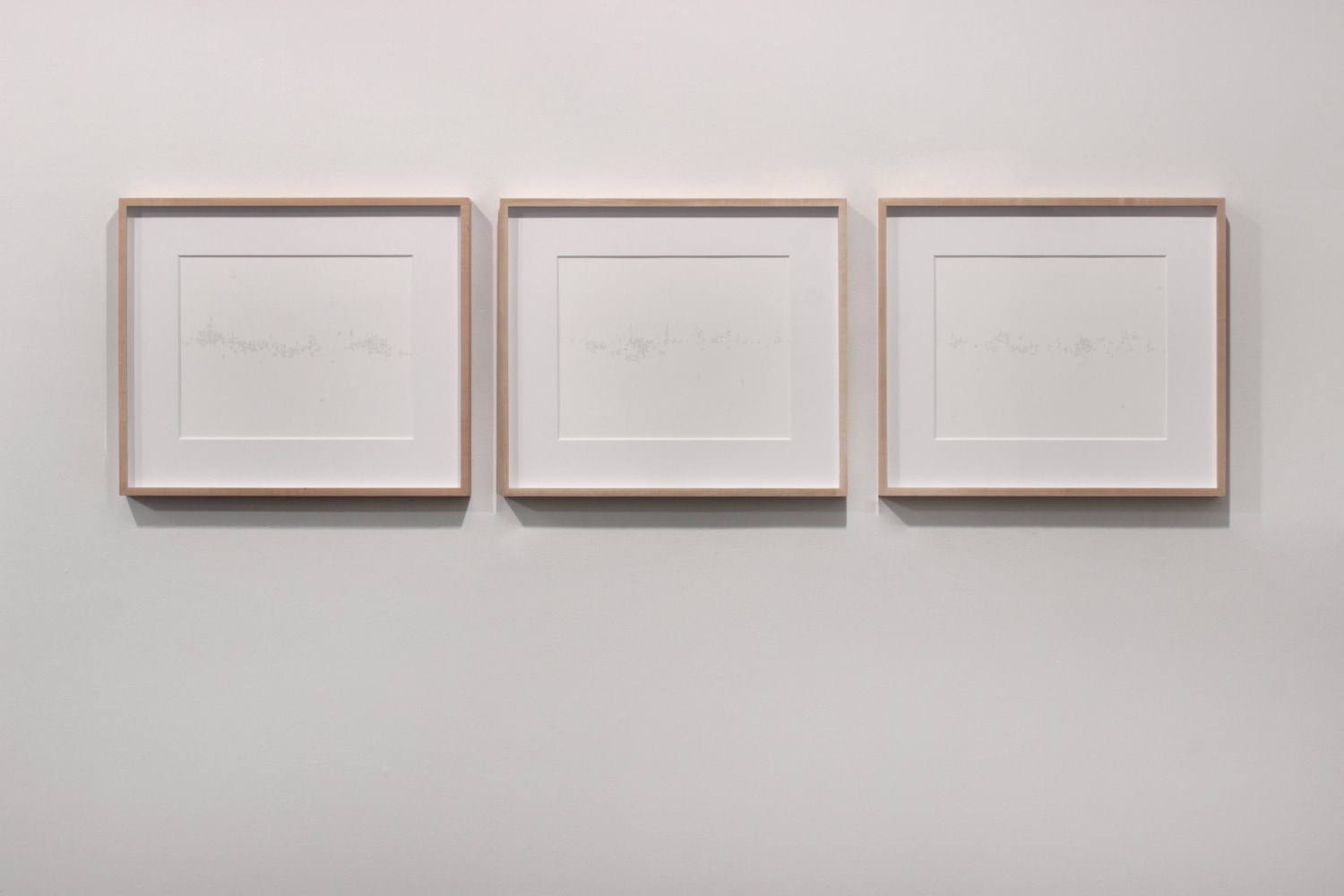 Marco Maggi, Three Slogans (Left), 2016, graphite on paper, 17.75h x 20.75w inches framed