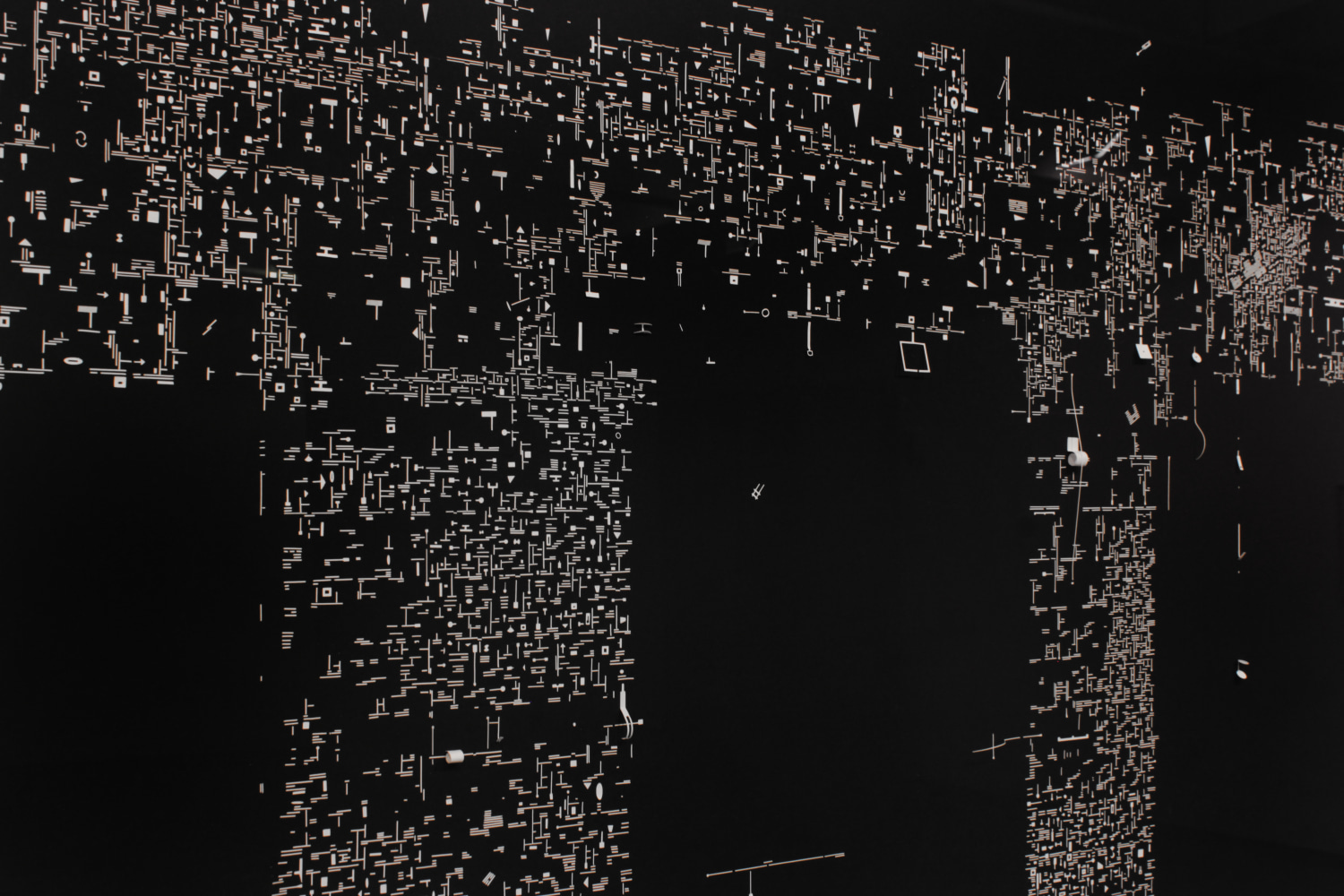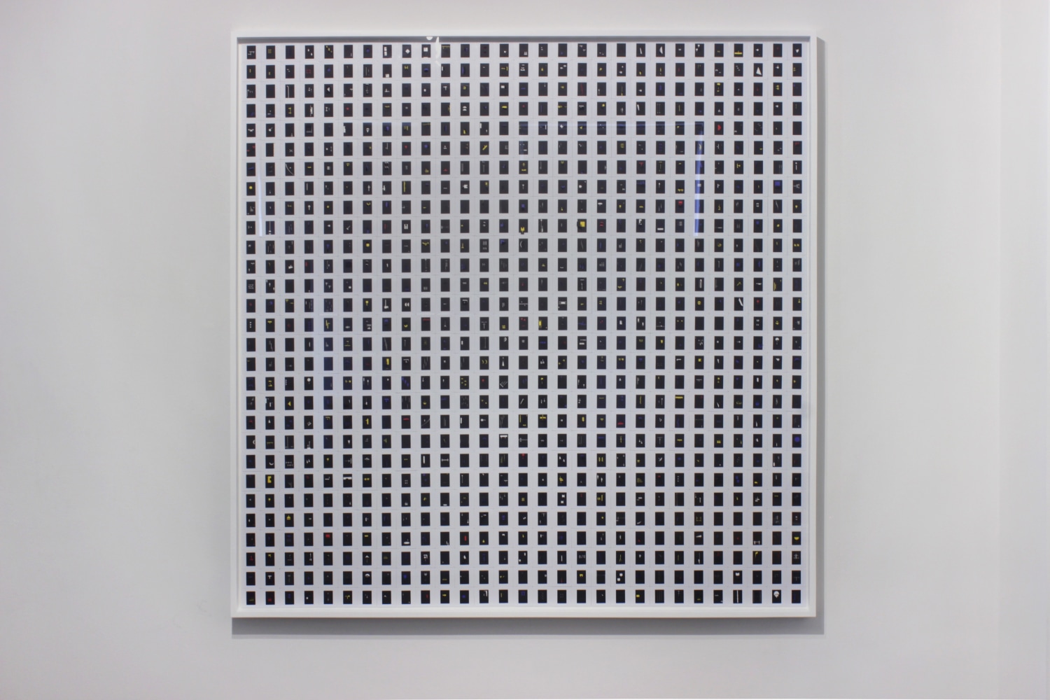 Marco Maggi, Small Hours, 2016, cuts and folds on 841 black and multicolor archival papers in 35mm slide mounts on sintra, 60 x 60 in, 61 x 61 in framed (30.48 x 30.48 x 5.08 cm)