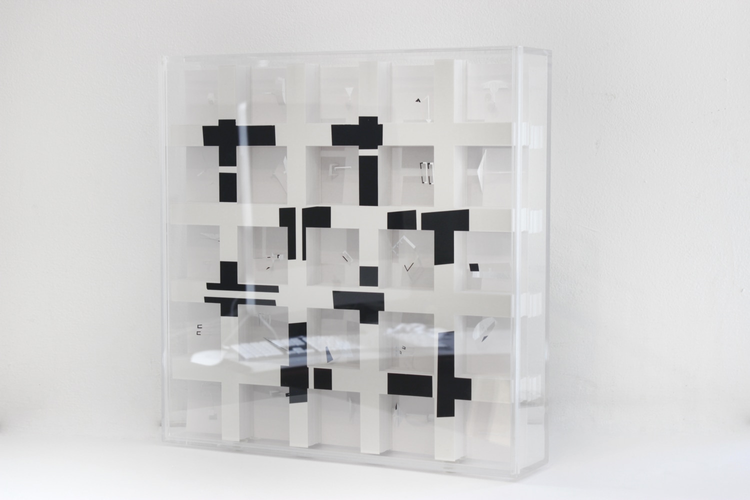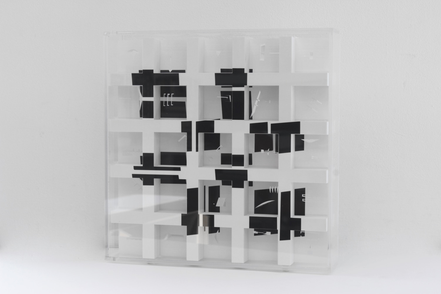 Marco Maggi, Complete Coverage on Oiticica, Turner Box Metaesquema Series, January, 2016, cuts on 500 pages, plexiglas, 12 x 12 x 2 in (30.48 x 30.48 x 5.08 cm), first view