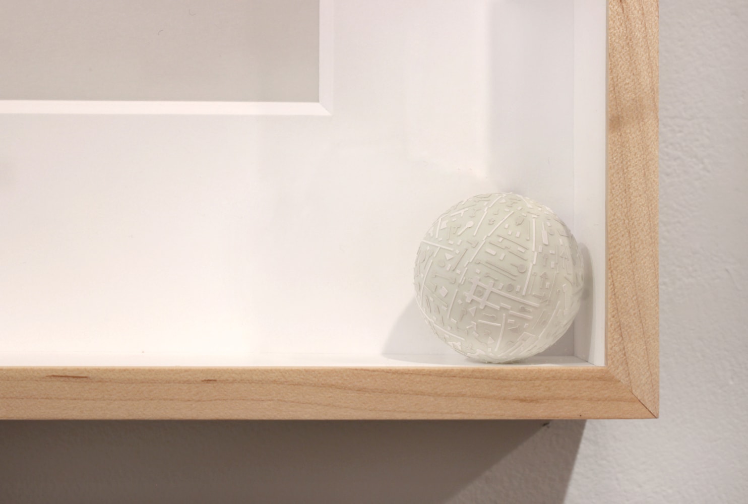 Marco Maggi, Dot, 2016, cut self-adhesive archival paper on ping-pong ball, archival paper, mat, frame, 11.5 x 14.5 x 3 in (29.21 x 36.83 x 7.62 cm)