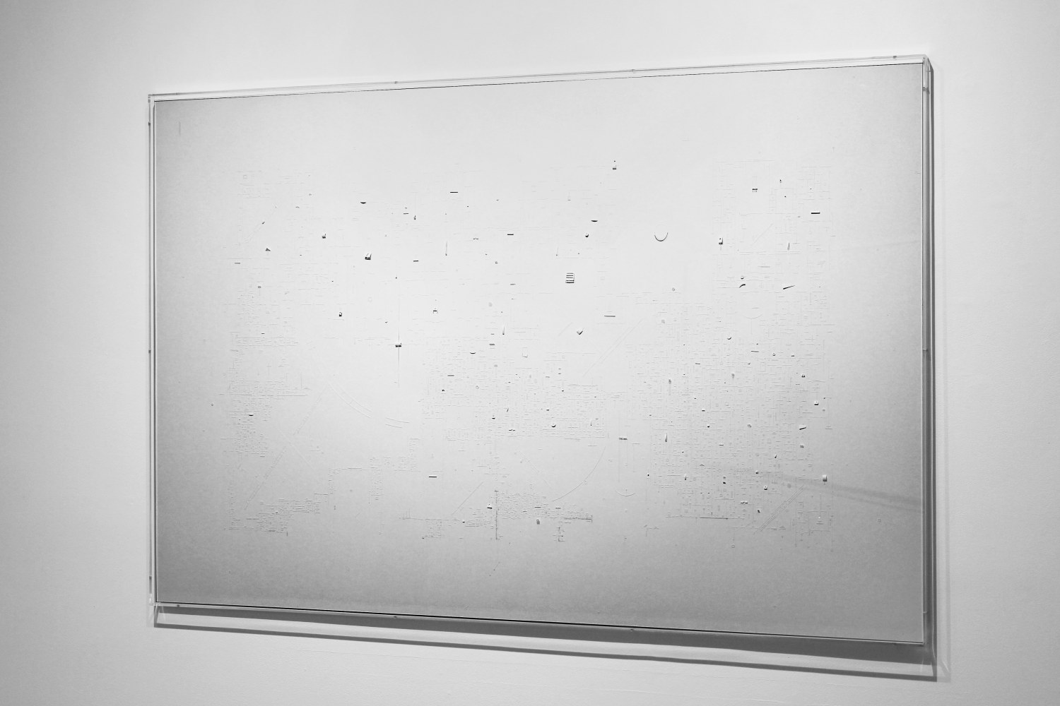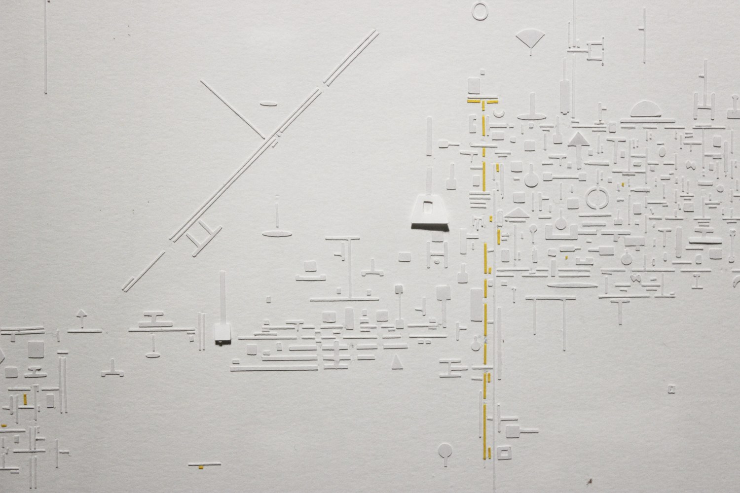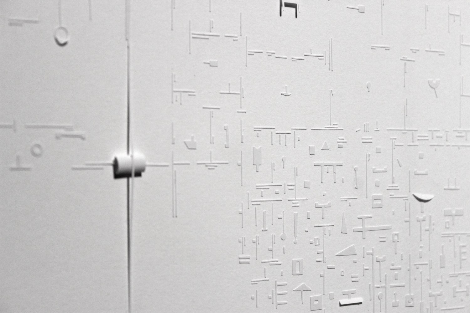 “Marco Maggi takes on the very paradox of inscription and traces and magnificently overthrows it. He does this by carving and cutting the insignificant into a trace, the vacuum into an archive, the shadow into an alphabet, the detail into a cosmos (…) No wonder that the fold is the organizing principle here, as well as the mag(g)ic force. It carries forth the undecidable, it creates the ambiguous. It splits the surface into two incommensurable halves. Indeed the fold is what encompasses or wraps, and escapes or diverts at the same time. The fold is what dissimulates and reveals.”
