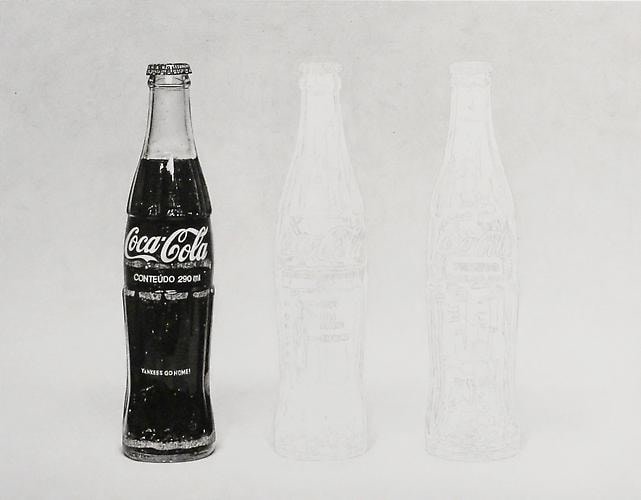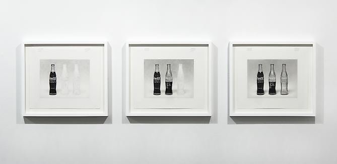 In the Seventies Sol Lewitt distinguished between conceptual art with a lower case "c" (his own work) and conceptual art with a capital "c" to refer to what Lucy R. Lippart called "Ultra-conceptual". In Conceptual or ultra-conceptual art, the idea is paramount and the material form is secondary, ephemeral, and/or "dematerialized". Lucy R. Lippart first tackles the concept of dematerialization in 1967, in an article she wrote with John Chandler. Forty years later, Marti Cormand spends countless hours drawing Coca Cola bottles by Brazilian artist Cildo Meireles (Insertions into ideological Circuits: Coca-Cola Project, 1970) or bringing an infinite level of focus to draw a photograph by Sherrie Levine who was appropriating a seminal Walker Evans photograph (After Walker Evans 4, 1981). Some of the drawings in the show materialize their own making process: they show the three stages to a finished drawing in three separate works, as if time had stopped in three points during the making of the works, they acknowledge the slow reveal of the objects on paper.