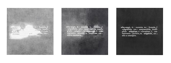 The gallery is pleased to present a solo exhibition by Marti Cormand. Formalizing their concept: Marcel Broodthaers, Luis Camnitzer, Joseph Kosuth, Sherrie Levine, Cildo Meireles, Liliana Porter, Horacio Zabala, is a drawn anthology of the conceptual art movement. Iconic conceptual works from the 1960s and 1970s are rendered in graphite on paper with an extraordinary amount of attention.
