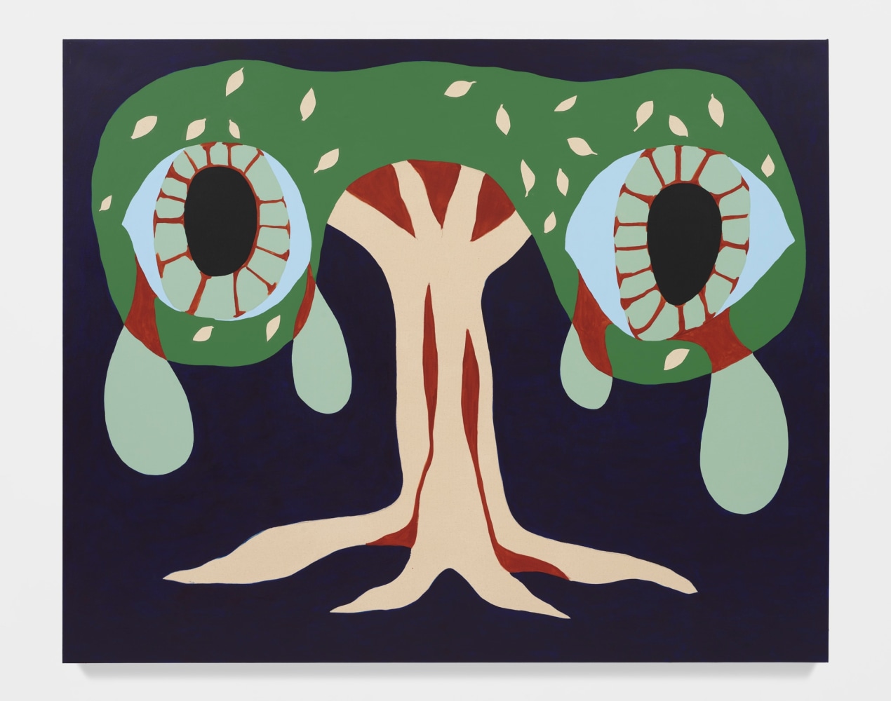 Visions and haiku-like phrases inspired by dreams and the life of the unconscious are at the heart of Enell’s work. A strange relationship of word and image is in play. Her paintings seem to freeze images from an ongoing flow of free association: a horse covered in eyes, a split meat-bed, a woman in deep pain, a crying tree, a flock of flying butts… “I often wake up late at night with clear visions or words that later develop into a painting. At times the work is automatic. The paintings are distilled and simplified, but open up if you spend time with them. When finished they take on a bold presence, a “oneness” (Mia Enell, 2022).