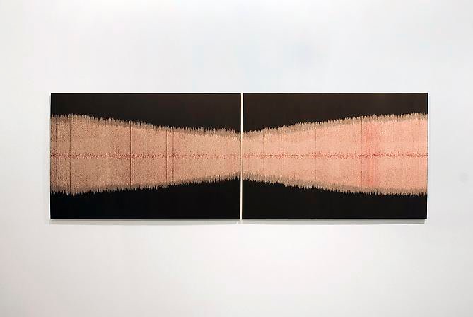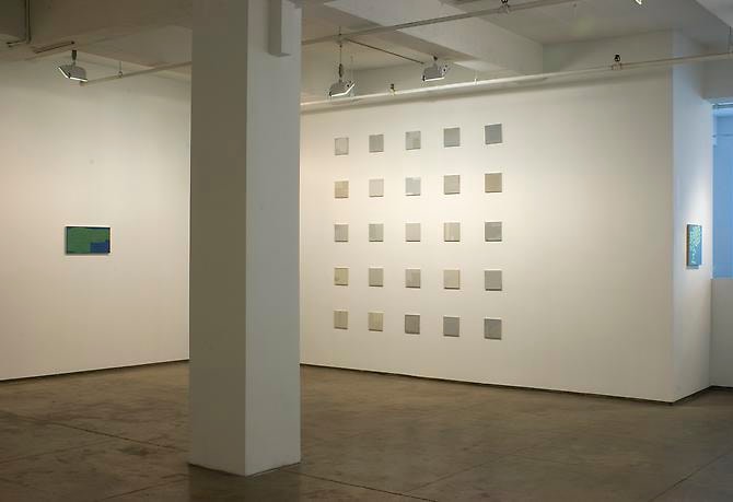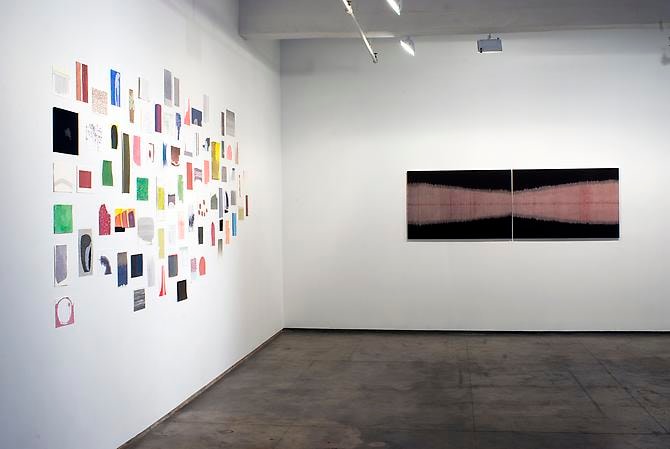80 small-scale drawings made over the past three years occupy one wall. A journey through Robert Jackʼs investigation into mark making, the drawings documents crucial and slight variations of structures, possible abysses and nearly imperceptible gaps. They accumulate signals, color vibrations, and variations impossible to detect without an extraordinary level of attention.