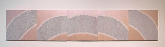 Dropout Amplifier is based on vision in the human eye in low light conditions- where colors drop out, and contrasts dominate. The piece is composed of 25 square panels arranged in a random 5 x 5 grid. The shapes are made of a series of small, broken elements that resists the brainʼs attempt to create form. Each fragment is outlined with a different but similar grey, further blurring the definition of the whole by distorting the brainʼs attempt to decipher the painting.