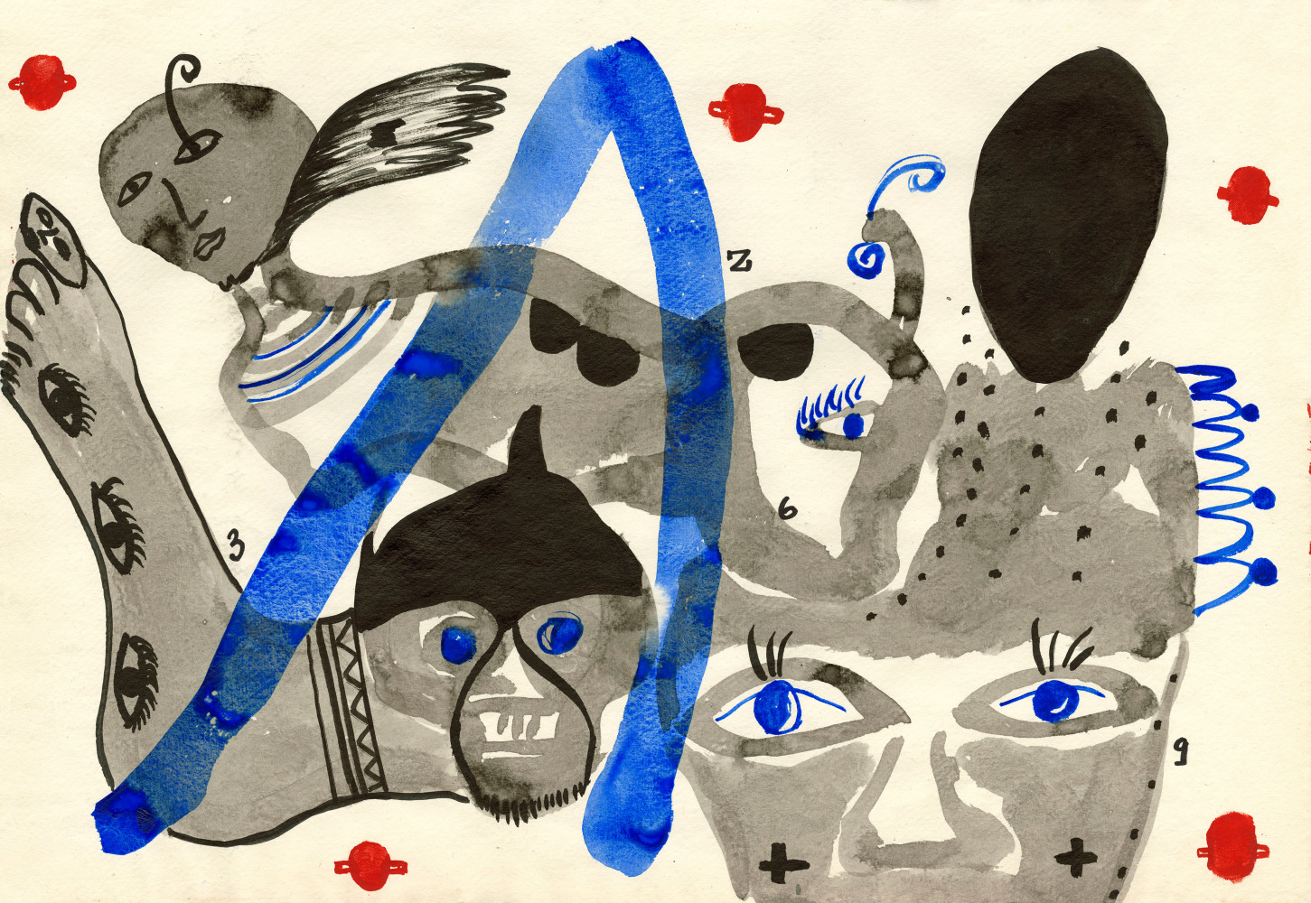 Commissioned by Eminence Grise Editions, three outstanding artists, Derrick Adams, Outtara Watts and Fred Wilson have entered personal responses into the dialogue generated by their fascination with Pushkin and the story. Derrick Adams’ works pay tribute to the two female characters, Countess N and her lady in waiting. In Fred Wilson’s suite of three images the black spade emerges to overwhelm and obscure depictions of a courtly lady and gentleman. Echoing Fyodor Dostoevsky’s statement that Pushkin’s tale represents “the pinnacle of the art of the fantastic,” Ouattara Watts has created two hallucinatory visions.