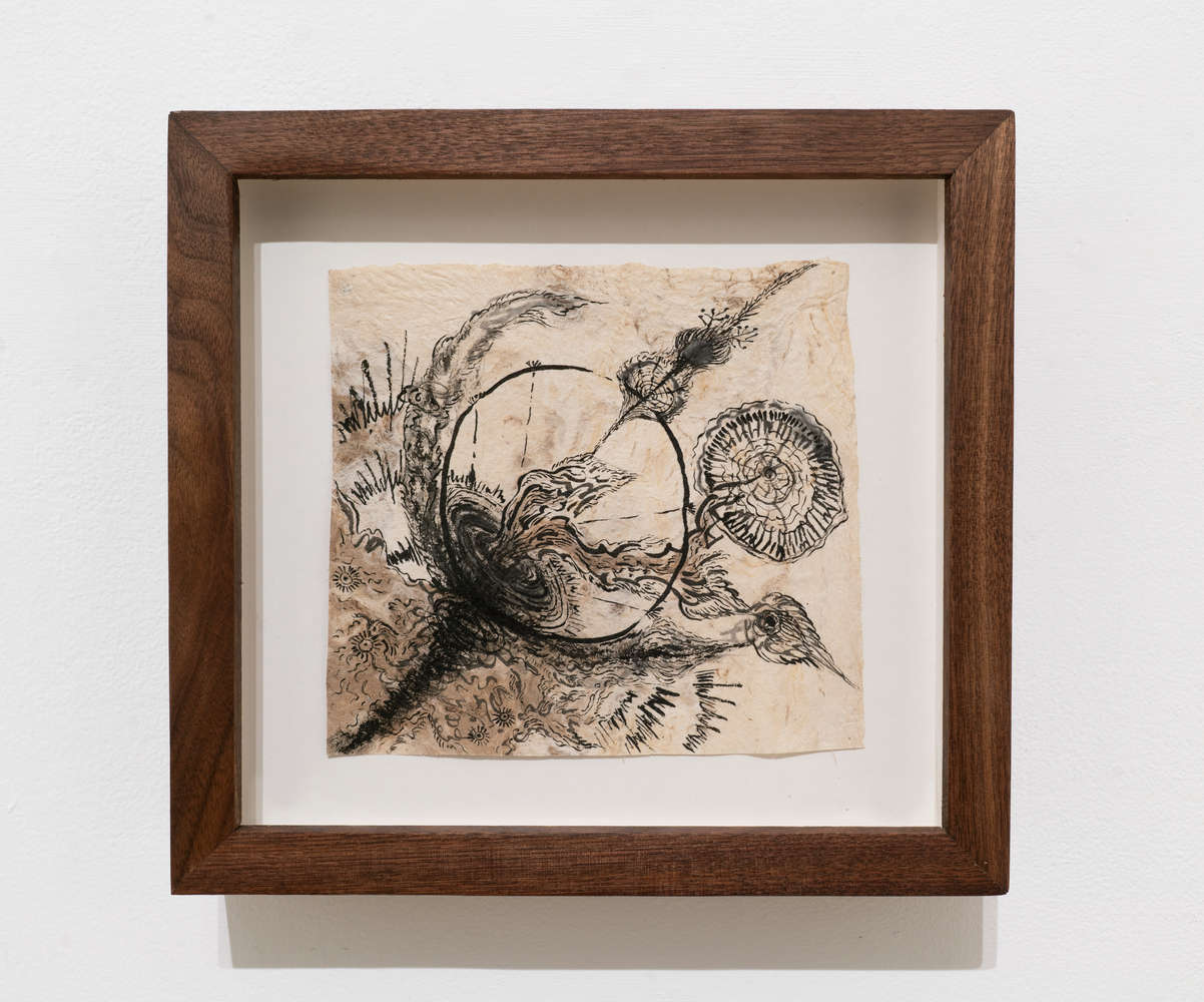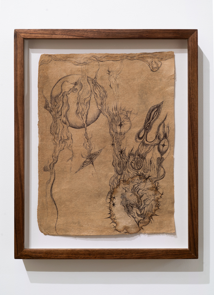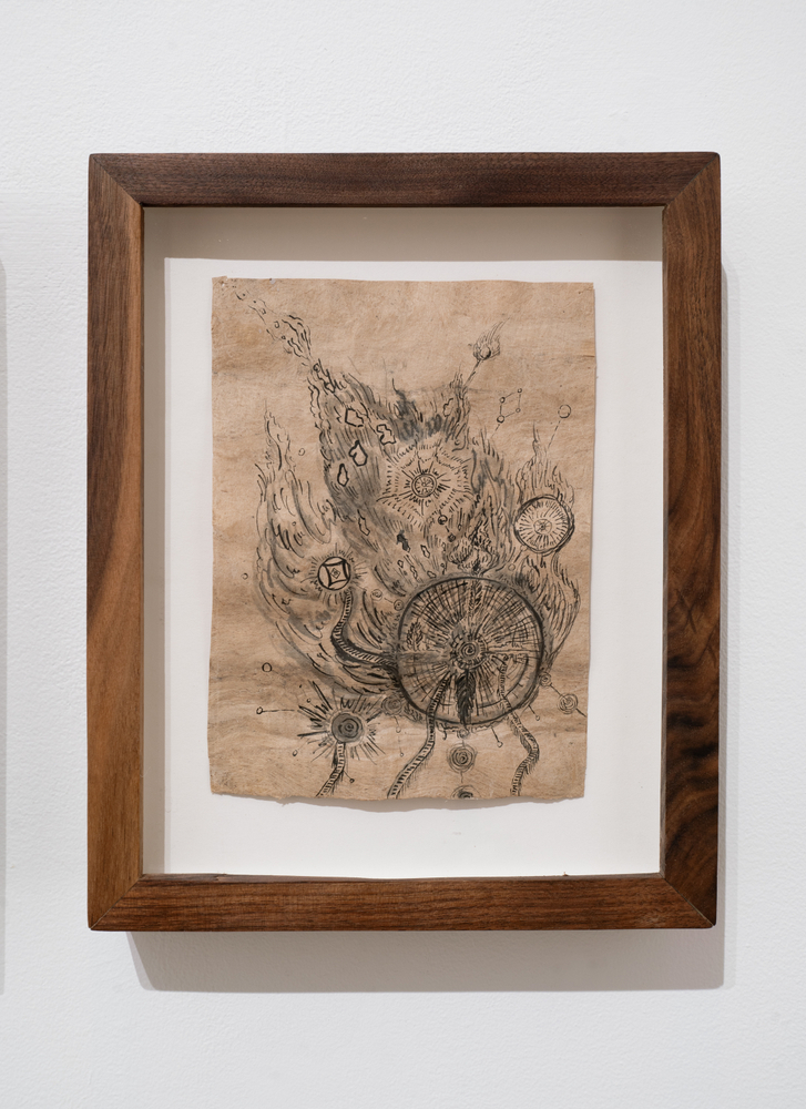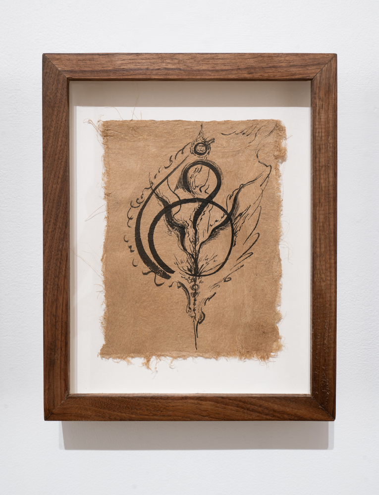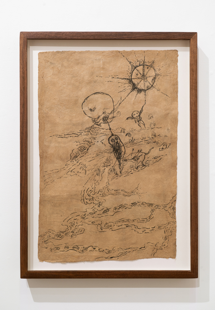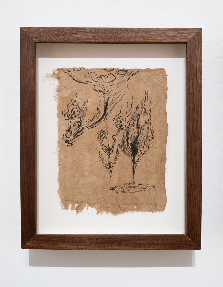 This exhibition focuses on ink drawings on amate paper. According to the artist the paper was first chosen for its roughness of texture and the feeling of antiquity it projects. She later discovered that this kind of paper had direct ties to ritual and spiritual texts, a discovery that reawakened her memories of the traditions of her heritage. Li also notes that “the ink too carries a thread back to my grandfather who taught me calligraphy as a child.”