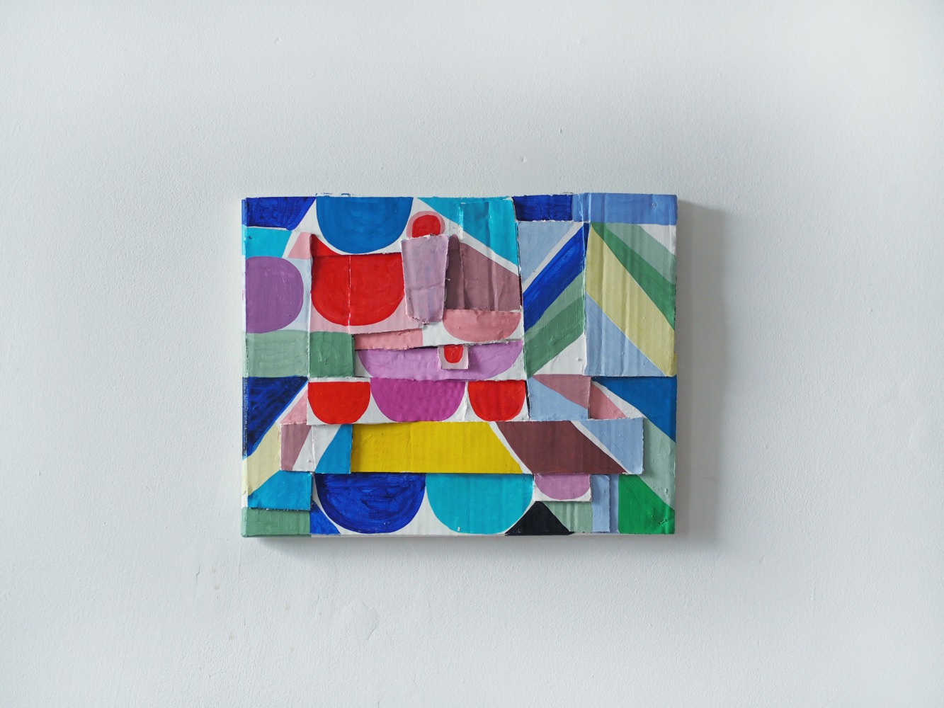 Nina Bovasso's new collage paintings are simultaneously raucous and understated. When considering the tradition of white paintings, the simplicity of Malevich and the nuance of Ryman come to mind. Bovasso represents the next generation and presents her own take on this unforgiving challenge. Bovasso tracked visual culture from an early age. Her father was an abstract painter and her mother a textile designer. A lifelong New Yorker, she came of age when Guston’s late works were causing an earthquake in the late seventies and eighties. As one of the progenitors of cosmic-comic abstract painting in the ‘90s, Bovasso is known for dense compositions of swirling vortexes and of irregularly stacked units that coalesce into humorously flattened mounds. The mounds have a totemic presence reminiscent of landscape devices from the earthly pagan delights of Piero di Cosimo to Spielberg's Close Encounters.