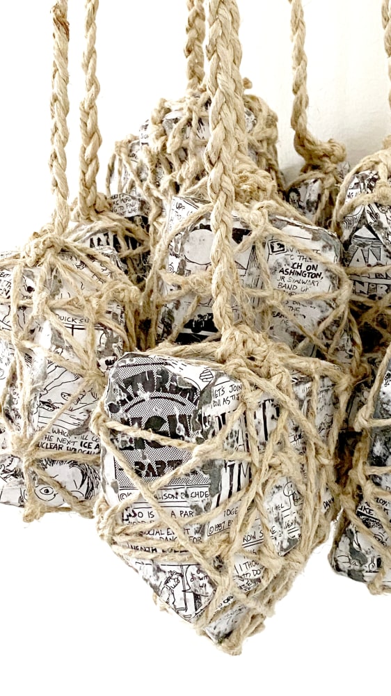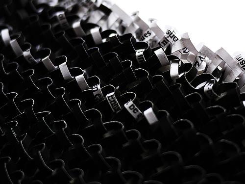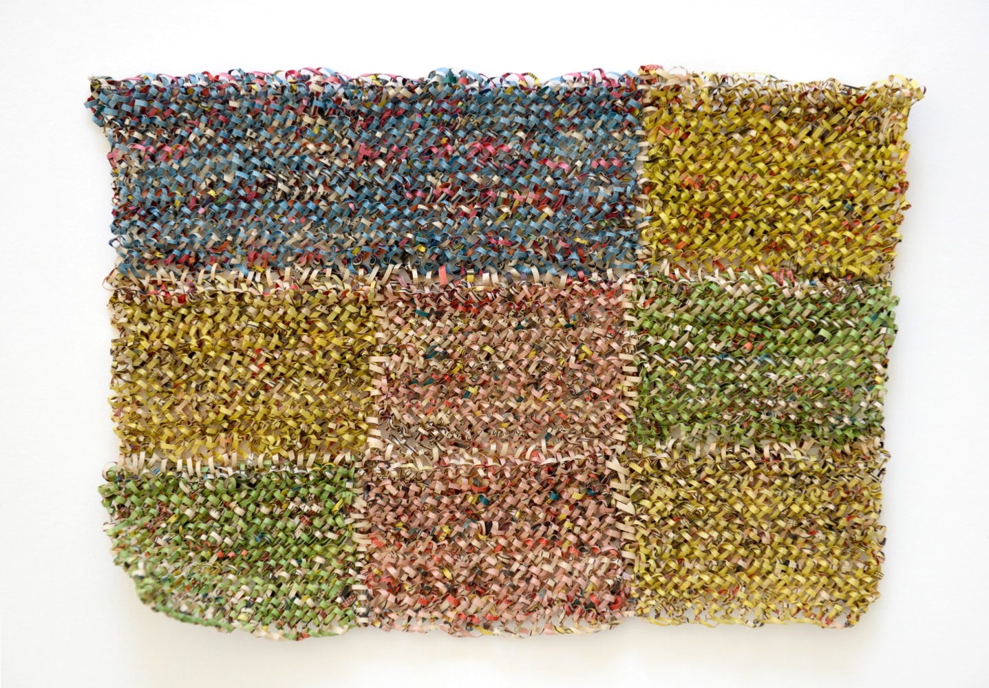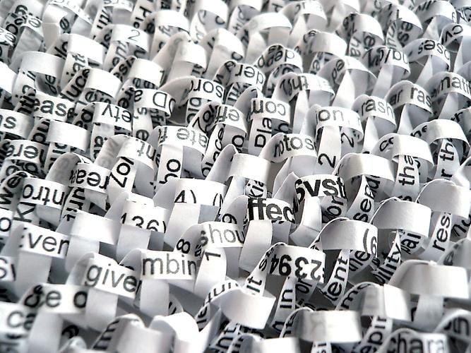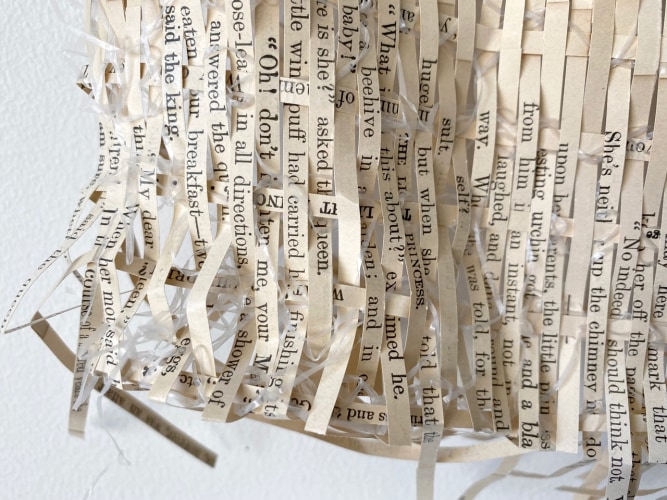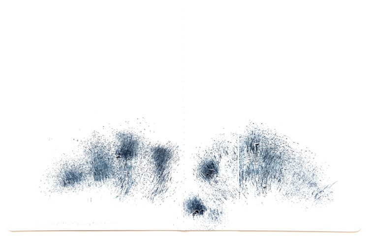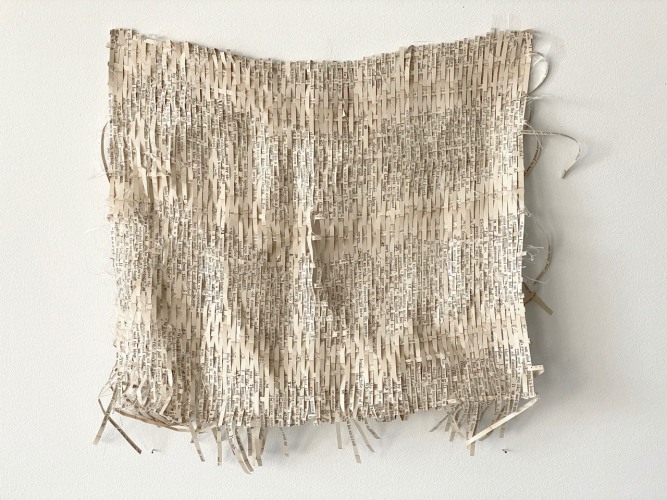 Born in Lisburn, Northern Ireland in 1959, Stefana McClure lives and works in New York. Fragmentation, obliteration, and reconstruction of information characterize McClure’s work. Primarily working with the manipulation of text, McClure translates, transposes and decodes the synesthetic structure connecting text and image, unveiling a new reality. Most known for her Films on Paper series, she meticulously layers subtitles of films, creating an abstract landscape of color and text. McClure explores ideas of language, and translation, and how linguistics and sound can take on a physical form.