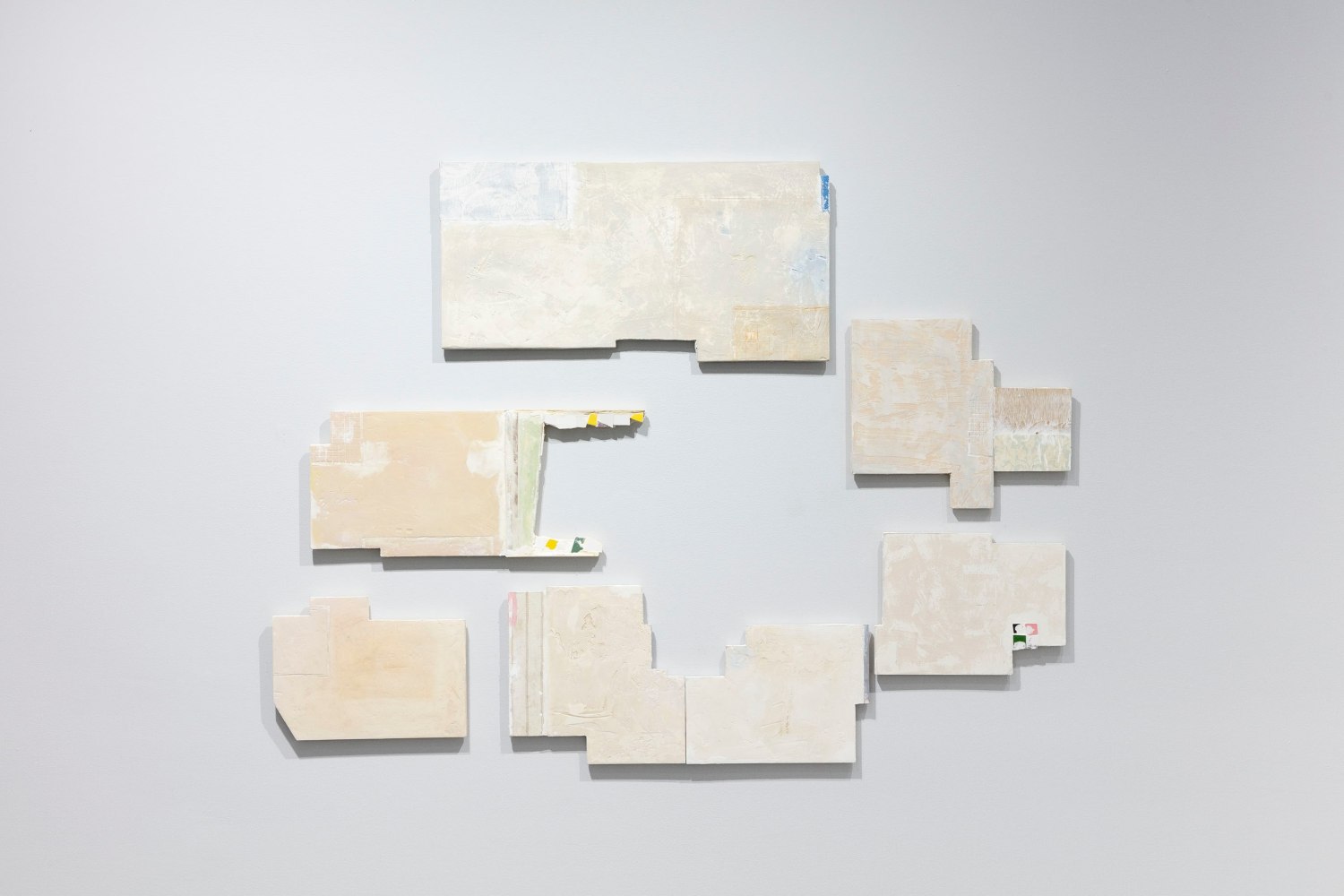 The gallery is pleased to present Left, Right, and Center, Ana Tiscornia's second exhibition with the gallery.  Displacement, fissure, uncertainty, and repetition are constants in Tiscornia’s artistic practice. In her newest work, she seeks to unite the fortuitous and the precise: paintings on and of wood resembling demolished wall fragments and modernist house floorplans. This union activates perceptions of physical fragility and ideological failure. The use of architectural tools addresses the devastated space with the semantics of its own construction,  mapping a sort of cartography of desolation and oblivion.