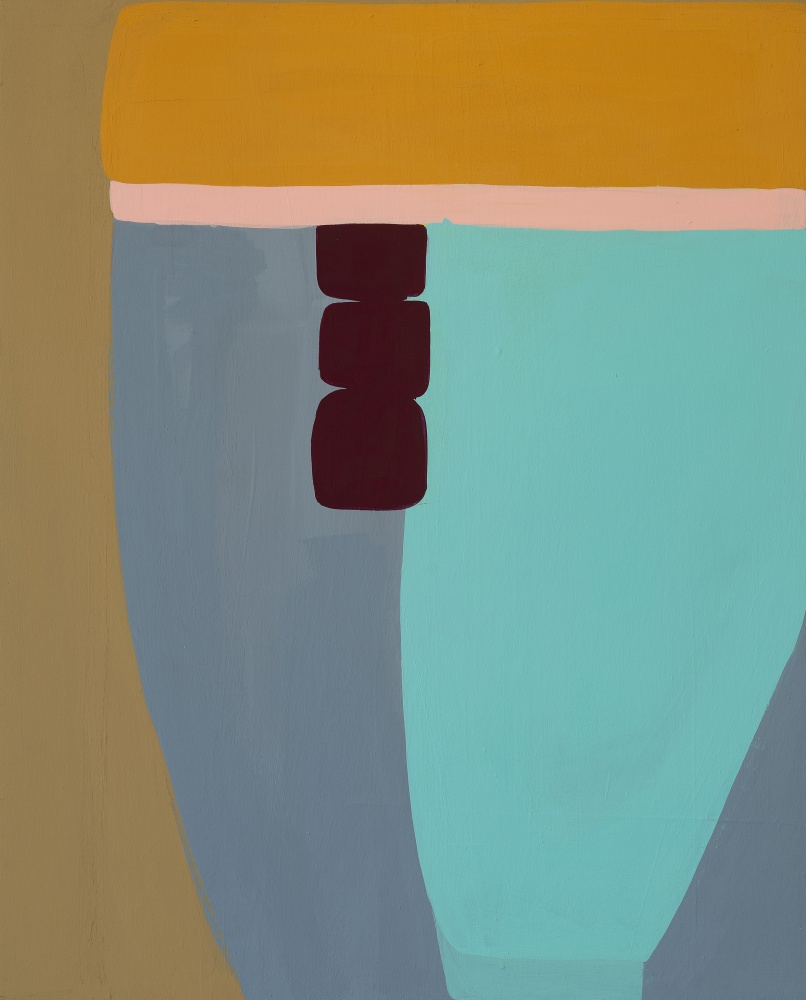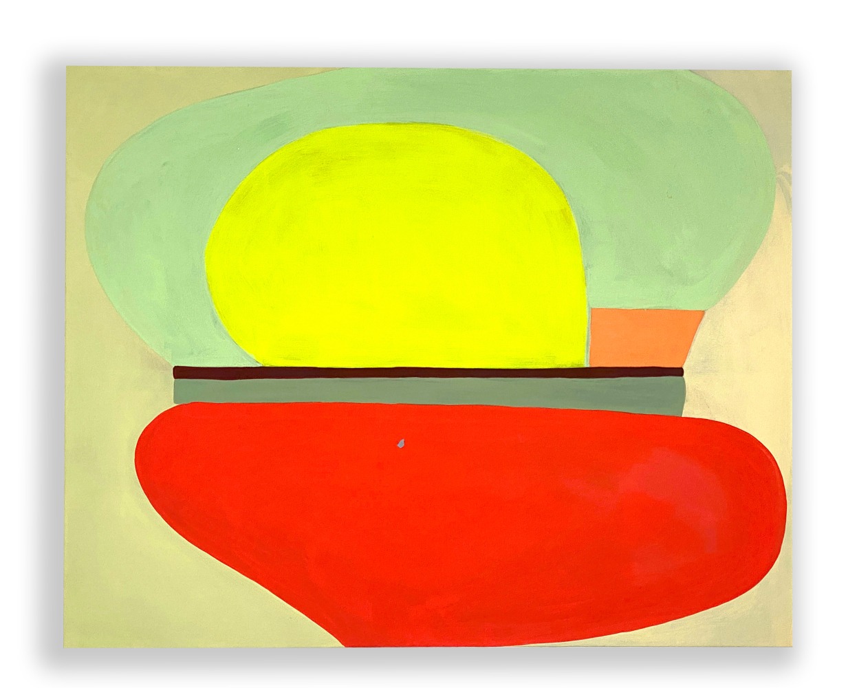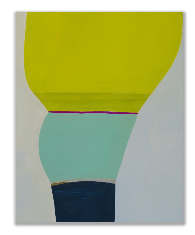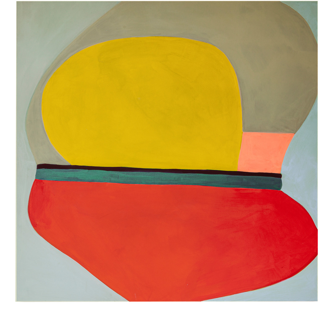 The eleven featured paintings portray complex color relationships and compositions first explored in the series of painted collages Moser began in the Spring of 2020 in response to the anxiety of the pandemic and displacement from her studio: “Made from fragmented, colorful volumes of varying dimensions and degrees of opacity, the paintings’ vivid and compact shapes touch and hug, echo and cancel each other. The chromatic ensembles suggest broken and vessel-like objects, pseudo-geometric topographies, or details of surrogate bodies. As if they were enlarged fragments of even larger forms, the paintings are marked by a sense of monumentality. Their contrasting size and scale and their extended play on part-whole relations makes them similar to imaginary mathematical sets and mereological studies.” (Agnes Berecz)