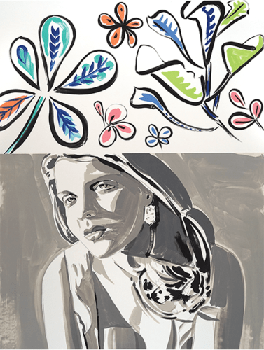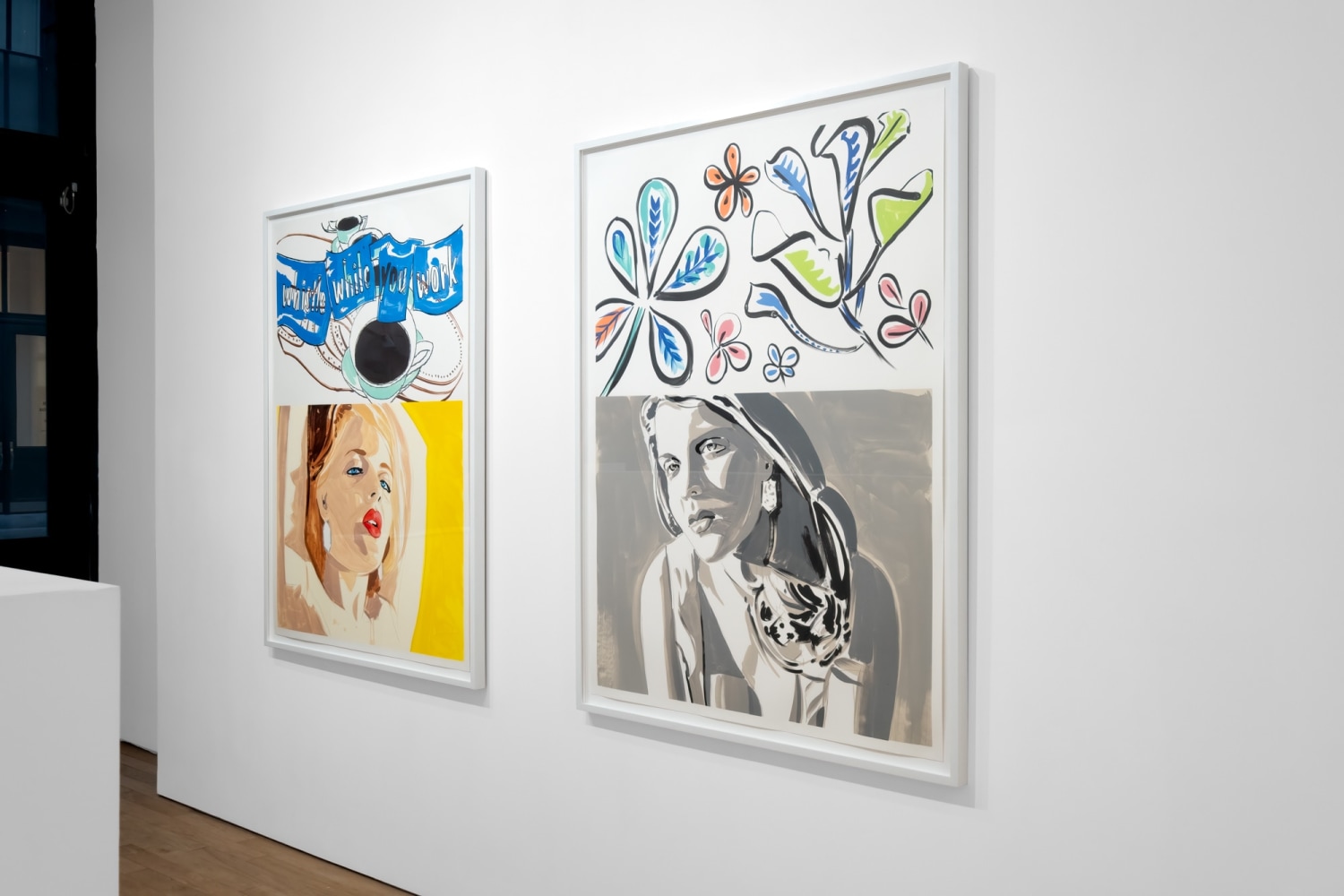 Monumental lithographs by David Salle complete the exhibition. Produced between 2014 and 2018 at Houston Fine Arts Press under the supervision of Richard Newlin, they combine lovingly rendered portraits of women with abstracted and appropriated images in Salle’s renowned manner and have never been previously exhibited in a New York gallery.