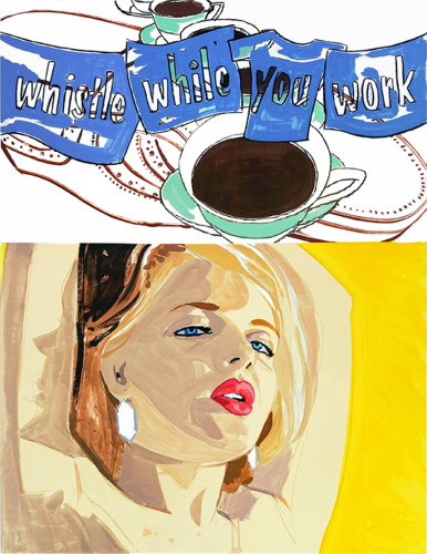 Deploying mixtures of irony and cynicism, William Cordova and Mika Rottenberg present ongoing dialogues concerning social and cultural systems. Cordova frequently focuses on the ephemeral and the transitional, impermanence and change. Rottenberg’s work has notably investigated systems of production and the generation of value in a capitalist world. Her works on paper frequently illuminate an absurdist perception of the world. Two artists whose images also border on the surreal are Mia Enell and Sean Mellyn. Enell’s dreamlike sketches are responses to the eccentricity of her inner life. In Mellyn’s meticulously crafted collage drawings, the eye of the artist is frequently implanted like a hidden camera surveilling the world.