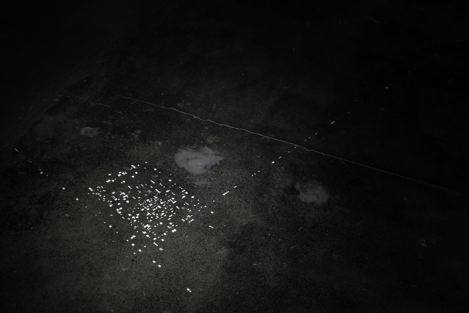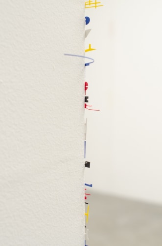 The gallery is pleased to present INITIALISM (From Obscurantism to Enlightenment), Marco Maggi’s 9th solo show with the gallery. The exhibition will revolve around a site-specific installation, a slow itinerary from obscurity to enlightenment. Upon entering the space, one can detect foundations or ruins of possible drawings: initials on the threshold that separates the visual arts from blindness. Ignitions of drawings grow on the floor and walls of the gallery space. They seem like hints for a treasure hunt, an escape room to challenge the viewer. During the initial walk, one will not be able to locate all the colored particules or detect the totality of the fragments. The only information will be a succession of details and approximations: initials of a text that no one can read in its integrality. After closely examining four walls, the public is invited to the brightness of a cabinet of drawings.