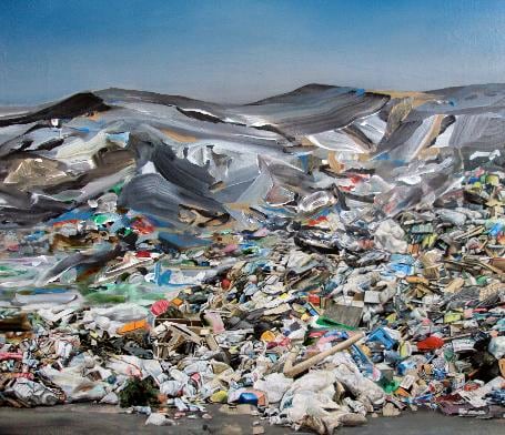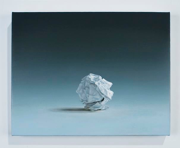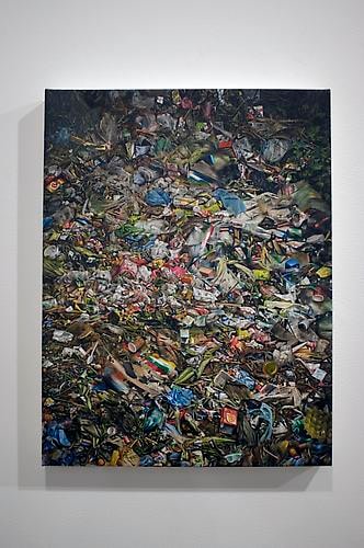 Garbage is both the ending and departure point of this new body of work. The close-ups on objects rescued from the confusion of a dumpster imply that the chaos is left behind. The abandoned objects, singled out on vacant backgrounds are painted with an extraordinary level of care and attention. Qualities of transparency, density, light, shadows and extreme precision in the manner of the Dutch School of Painting are applied to render a discarded umbrella, pieces of corrugated cardboard, crumpled paper, broken boxes, open magazines etc...