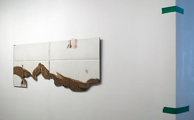 The artist has focused an incredible level of precision to replicate every element of a particular box, on an identical flattened box, built of acid-free cardboard, painted to look like naked corrugated cardboard. The resulting replica and the subsequent fragments bear every element of the box’s biography: cuts, marks, folds, footprints, leftover stickers and labels, staples, fragments of tape, ripped corner and sides. The fast gesture of a quick notation made with a marker on the box, or the trace of a footstep are meticulously rendered with the slowness inherent to painting with oil. Qualities of transparency, density, light, shadows and extreme precision in the manner of the Dutch School of Painting are applied to bring the work to an articulate point of self-consciousness: Marti Cormand’s landscapes of cardboard constantly remind us that art is a theater of manipulated information.