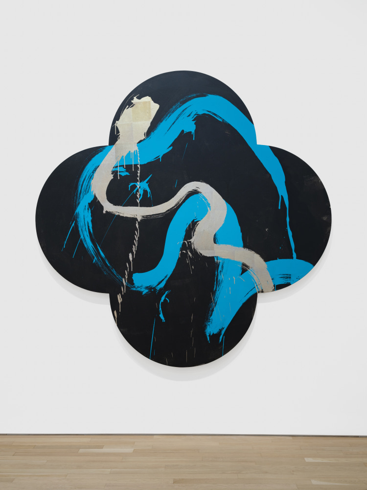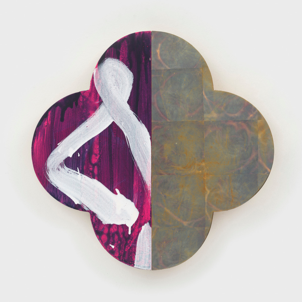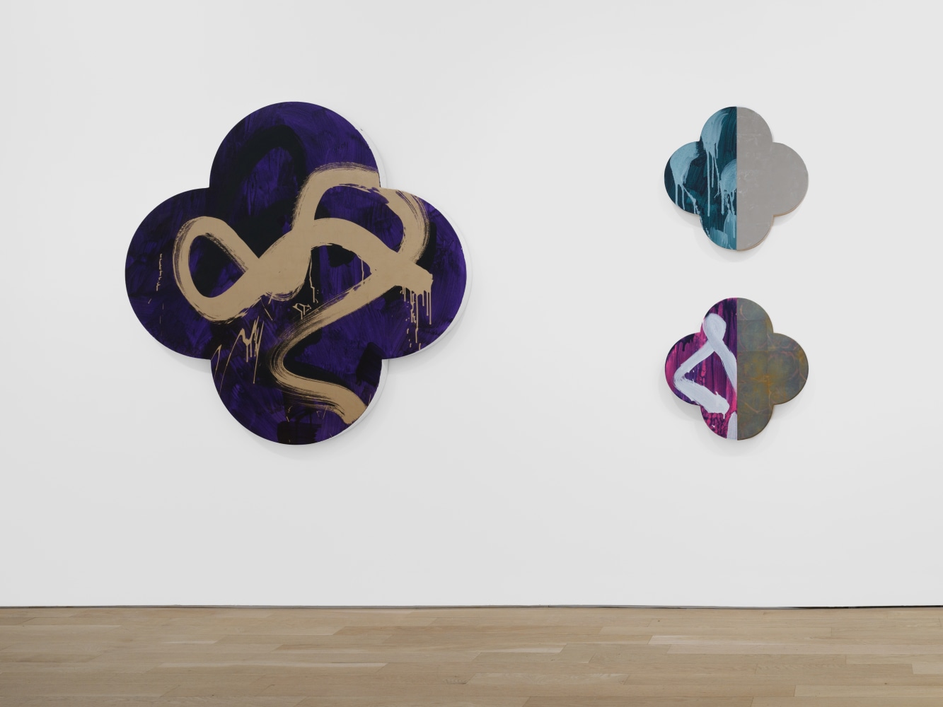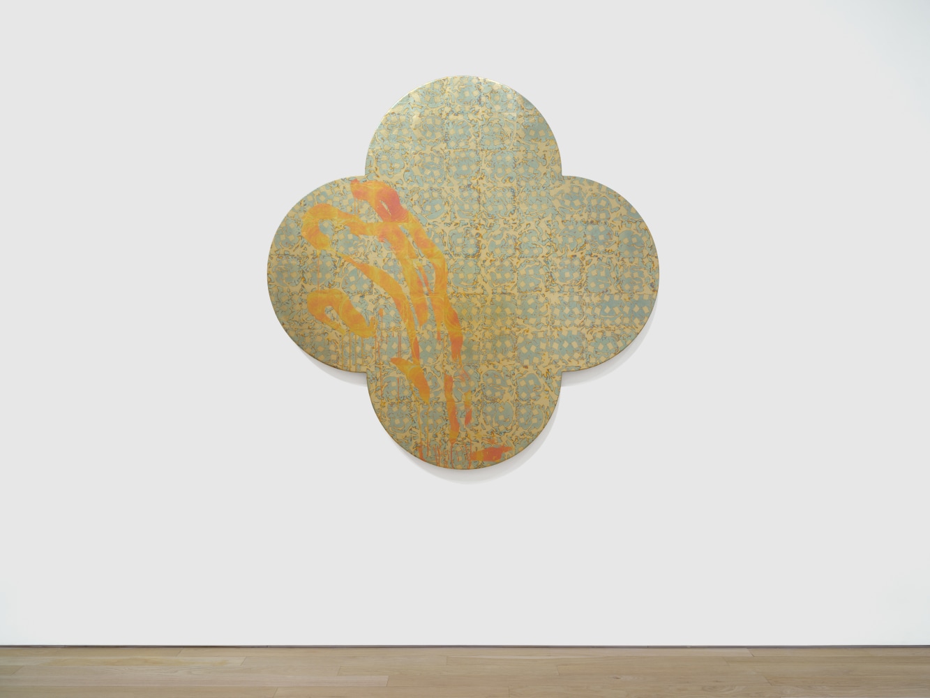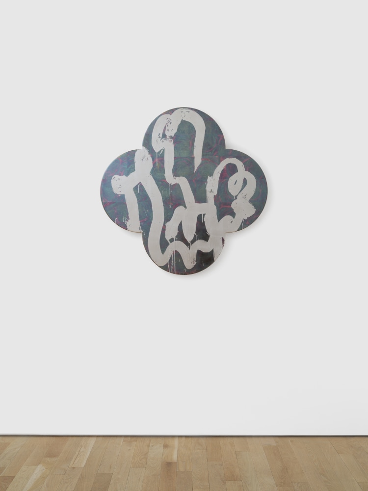 The Alchemist is the artist’s first solo appearance in New York in more than a decade. Born in New Zealand in 1935, Gimblett traveled extensively before settling in New York in 1972. His work draws on a broad range of aesthetic, intellectual and spiritual traditions that overarch the divisions between East and West. Beginning in 1983, and continuing today, Gimblett’s practice deploys the gestural dynamics of both Abstract Expressionism and Zen calligraphy onto richly layered and endlessly diverse metallic quatrefoil surfaces. While continuing to create paintings in a broad range of formats Max Gimblett’s evocation of the quatrefoil as a signifier of spirituality calls to mind the symbol’s presence in myriad cultures ranging from Buddhist mandalas to Christian rose windows. According to Chris Saines, Director of the Queensland Gallery of Modern Art, “A Gimblett quatrefoil makes a contemporary object of that historic space then shifts its meaning at the surface, searching for the particular in the face of the universal.”