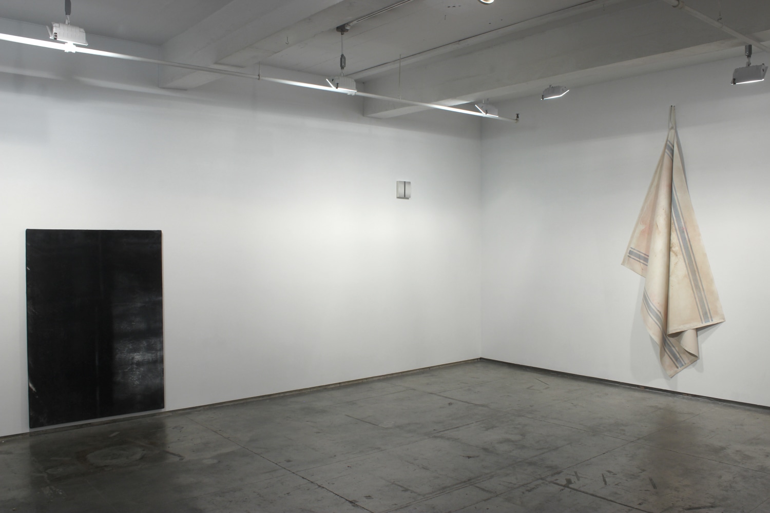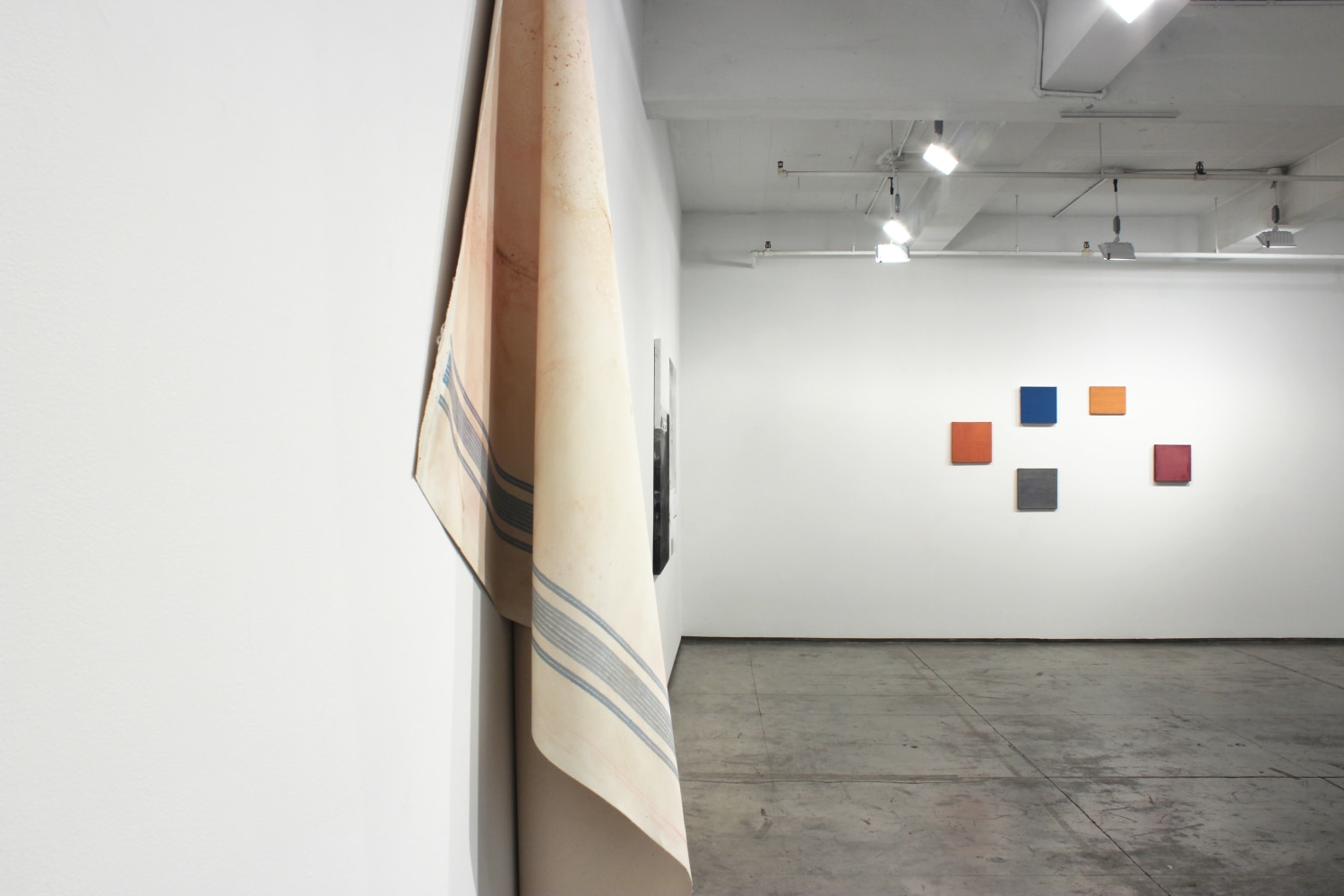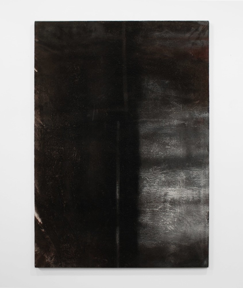 Dario Escobar's Blacksmith Paintings are based on two absences: the absence of the painted object and the absence of the subject who painted it. Part of a larger body of ‘self-generated’ or ‘performative’ works, the painting in the exhibition documents the back wall of a blacksmith workshop in Guatemala city. A blank canvas, stapled to the backdrop wall used to spray paint metal objects, accumulates layers and layers of paint residue. The painting is executed unknowingly by blacksmith workers without direct intervention of the artist's hand whose only decision is to pick-up the work after a certain time. The result is a condensed and effortless journey through the main painting movements of the last century - from 1960s color field painting, to Latin American geometric abstraction, minimalism, pop, and street art, depending on the day-to-day order of business at the shop.