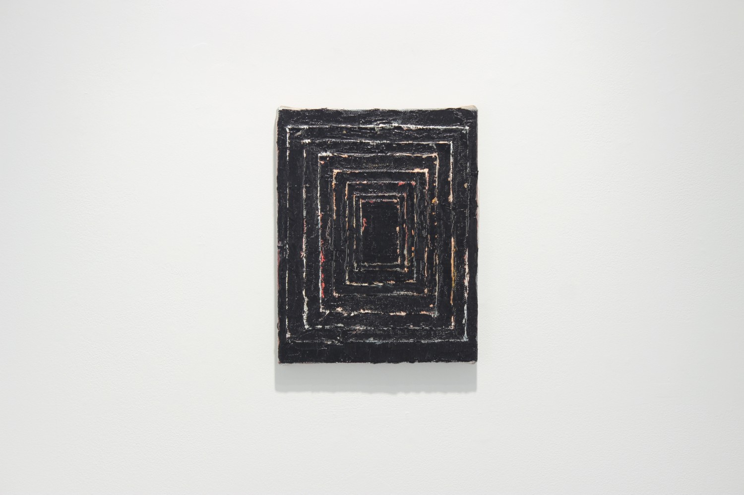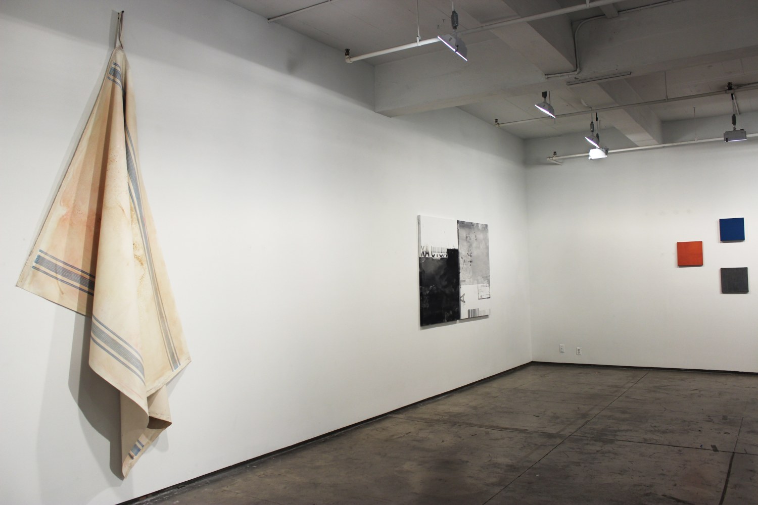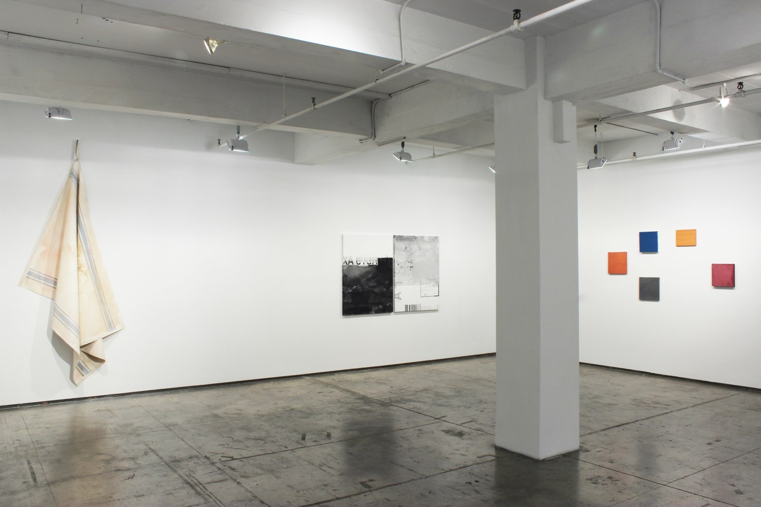 Dario Escobar's Blacksmith Paintings are based on two absences: the absence of the painted object and the absence of the subject who painted it. Part of a larger body of ‘self-generated’ or ‘performative’ works, the painting in the exhibition documents the back wall of a blacksmith workshop in Guatemala city. A blank canvas, stapled to the backdrop wall used to spray paint metal objects, accumulates layers and layers of paint residue. The painting is executed unknowingly by blacksmith workers without direct intervention of the artist's hand whose only decision is to pick-up the work after a certain time. The result is a condensed and effortless journey through the main painting movements of the last century - from 1960s color field painting, to Latin American geometric abstraction, minimalism, pop, and street art, depending on the day-to-day order of business at the shop.
