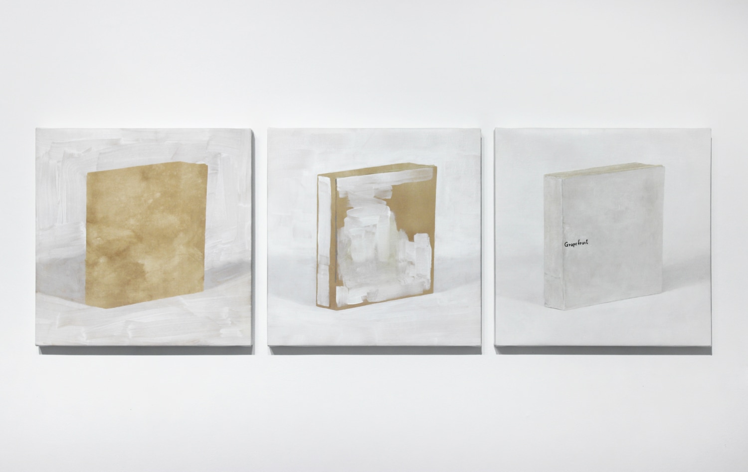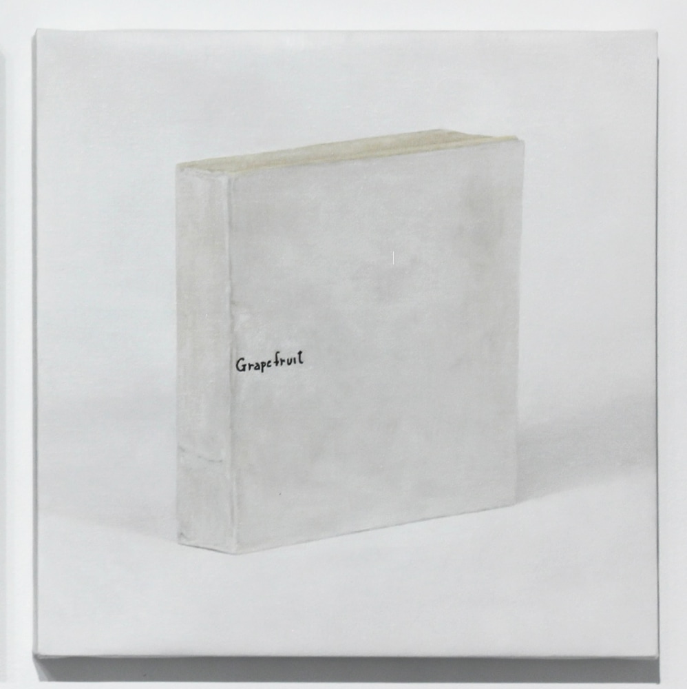 Martí Cormand's work is a testimony to the degradation of certainty. For the past two years, he has been investigating the notion of conviction by observing and rendering iconic works of the conceptual art movement "When no one has too many certitudes any more, processes become essential. I have nothing urgent to communicate, no absolute convictions. I investigate the certainties that others had in the 1960s and 1970s. My favorite subject is the study of conviction" (Martí Cormand). With no effort to hide its labor and adjustments, the work in the exhibition, a rendering of Yoko Ono's 1964 Grapefruit, dissects its own process by showing the three stages to a finished painting. As if scanned at three points during its making, it becomes a self-amused and unassuming work that does not invite any transcendental reading.
