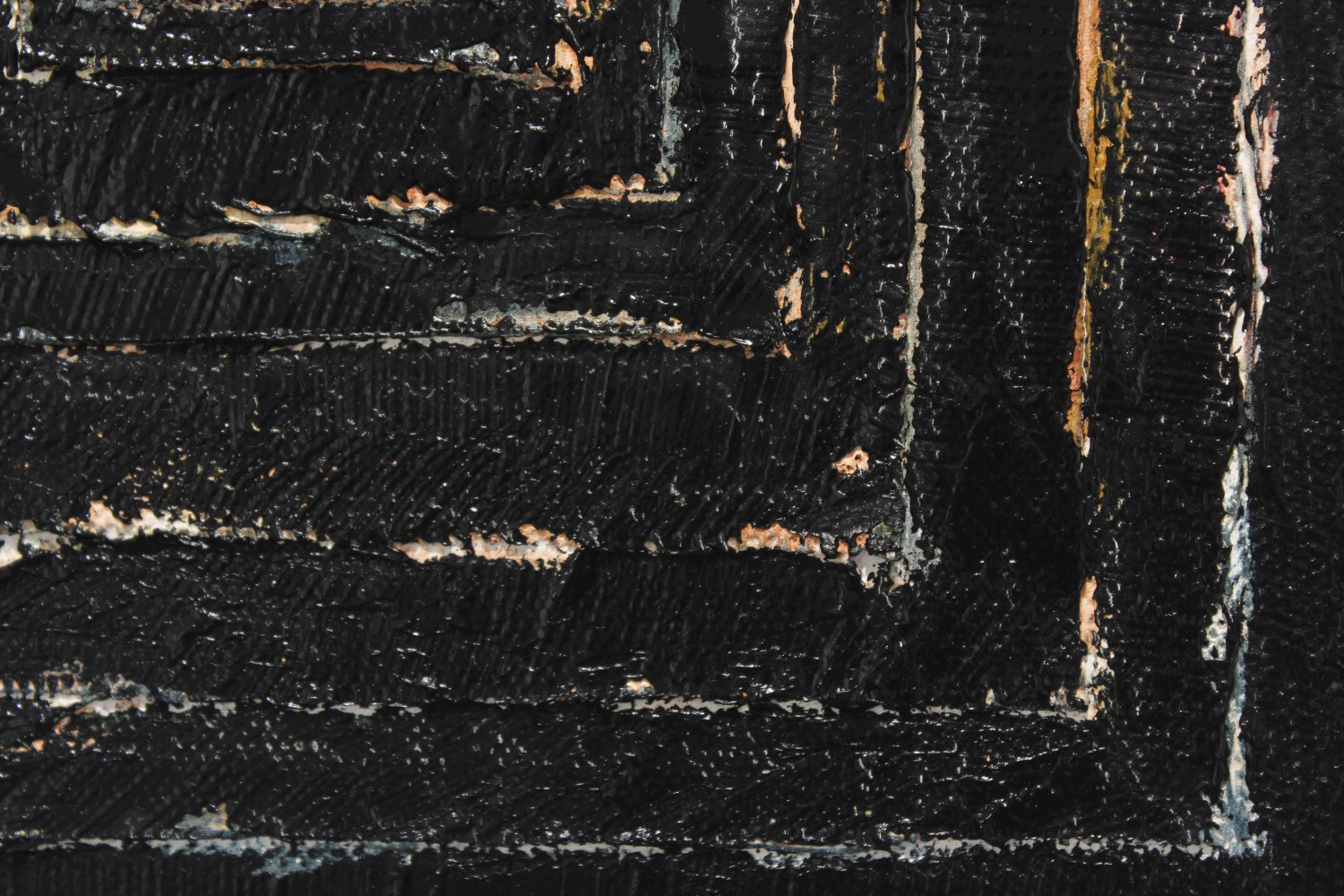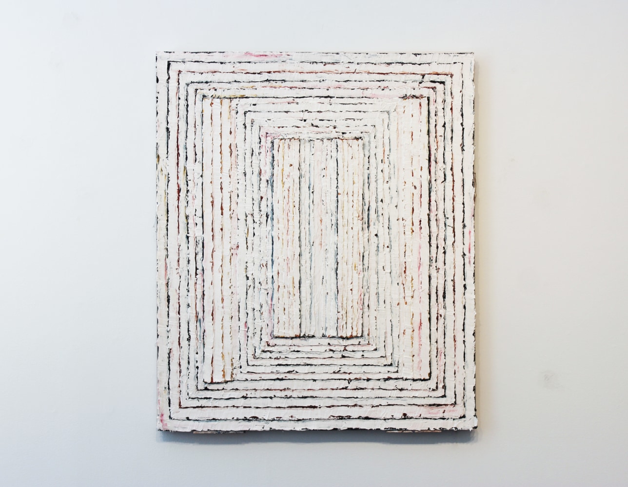 Adam Winner's paintings are concerned with multiple forms of imperfection. Made with a palette knife, in layer upon layer of oil, gesso and linen, the paintings expose their own accidents and mistakes, laying bare the seams, showing ripped linen strips and frayed edges. Winner's paintings of imperfect gestures are imbued with a feeling of permanent self-doubt. They embrace a sense of their own failure yet reveal an intimate familiarity with the materials.
