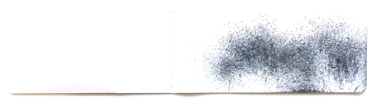 Explosions were everyday events in the Belfast of the early 1970s where McClure grew up and they figure largely in a series of new Teflon drawings. Taking the form of open notebooks, each is a rendering of a protest poem “typed” on a sensitive Teflon surface by typists and stenographers wearing special gloves that have been modified to bear an IBM Selectric golfball at the end of each finger. Rich with imagery of drums, bombs, banners and sectarian graffiti, as Heaney put it, these poems strive to “grant the religious intensity of the violence its deplorable authenticity and complexity.”