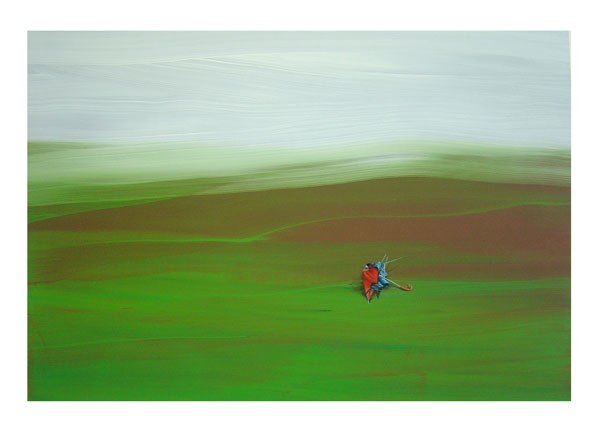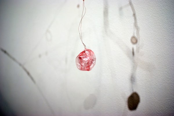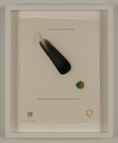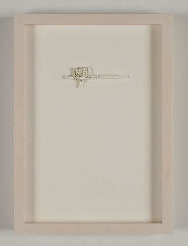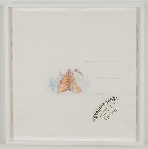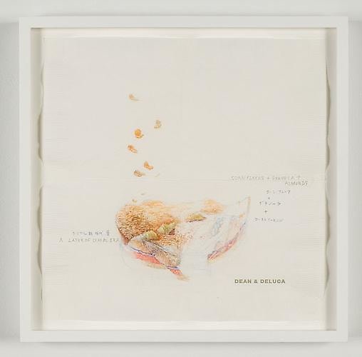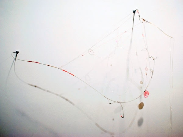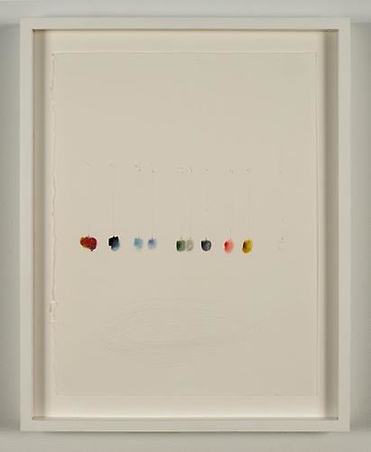 Marti Cormand documents inconvenient migrations and relationships that emerge from odd encounters in a dumpster. In this new work, introduction to his upcoming exhibition in the fall, a discarded umbrella alters our perception of an otherwise abstract color-field painting. Ken Solomon's "Google Portraits" are gouache and watercolor renderings of Google image searches: a "Fontana" search, results in a surprising juxtaposition of art and pin-ups, a search for "genetic optimism" leads to a visual poetry of free associations. Yuken Teruya's colored pencil drawings on napkins relate to his ongoing "Desert Project", a re-birth of the old perspectives of the earth, from Geocentric to Heliocentric, rendered in sculptural form with sweets. Julianne Swartz's suspended wire drawings use the air as material. Formal and gestural, they are barely material and almost weightless.