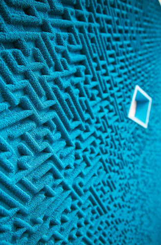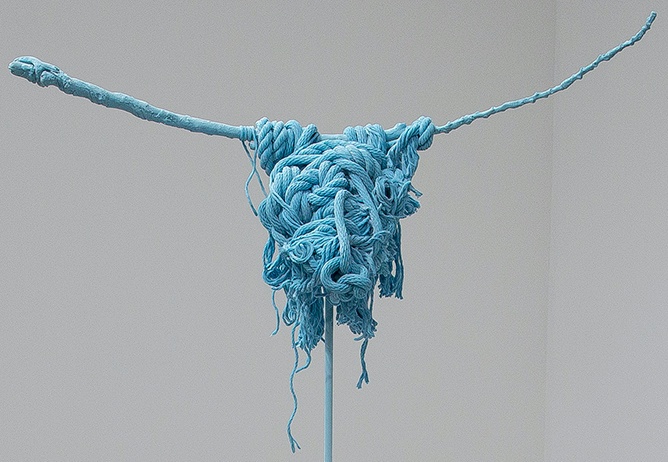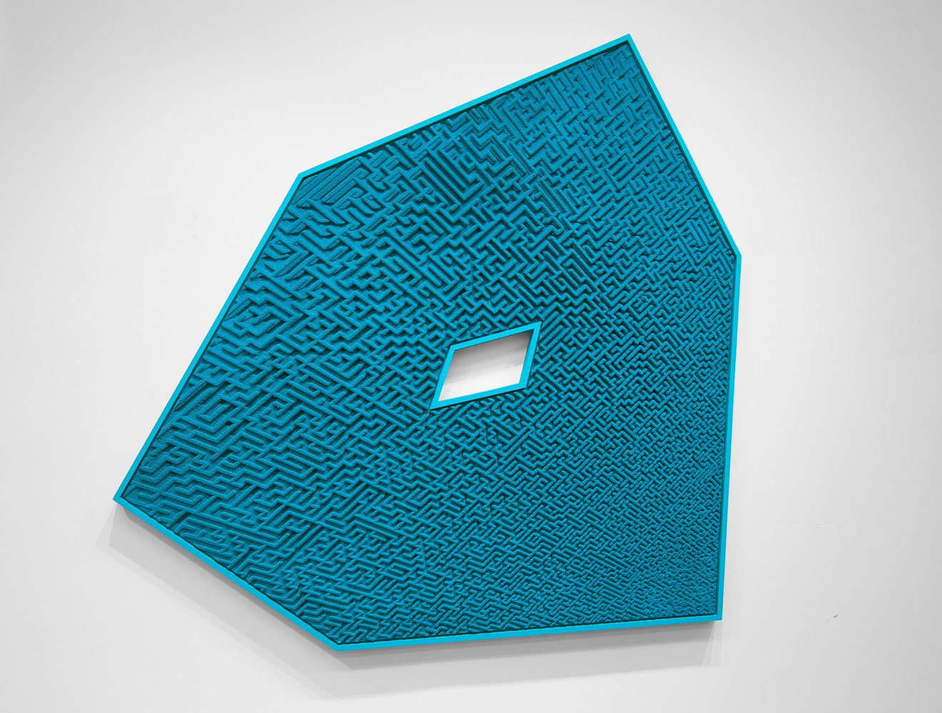 A mirror with robotic eyes that follows the viewer, a bronze Satyr with a flute, a towering Minotaur made of cast sticks, paintings of labyrinths in 3D and a head detailed down to the level of skin pores with microscopic hair - the works in the show are the remnants of something invisible yet deeply present. Highly detailed representations of reality, they are yet somehow very far away, as are the Greek mythologies transposed upon the artist's personal mythos.