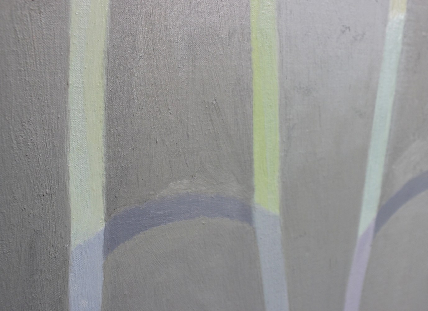 Thornton’s engineering study and early work as an industrial designer have imbued his paintings with a clean logic; but he turns this logic on itself. Rather than solving visual problems as would a designer, Thornton uses these skills to describe profound visual and philosophical questions about the nature of perception and reality. It is as if Thornton was seeking in his paintings to confirm ineffable issues of his own being, while making beautiful reductions of what he thinks he saw.